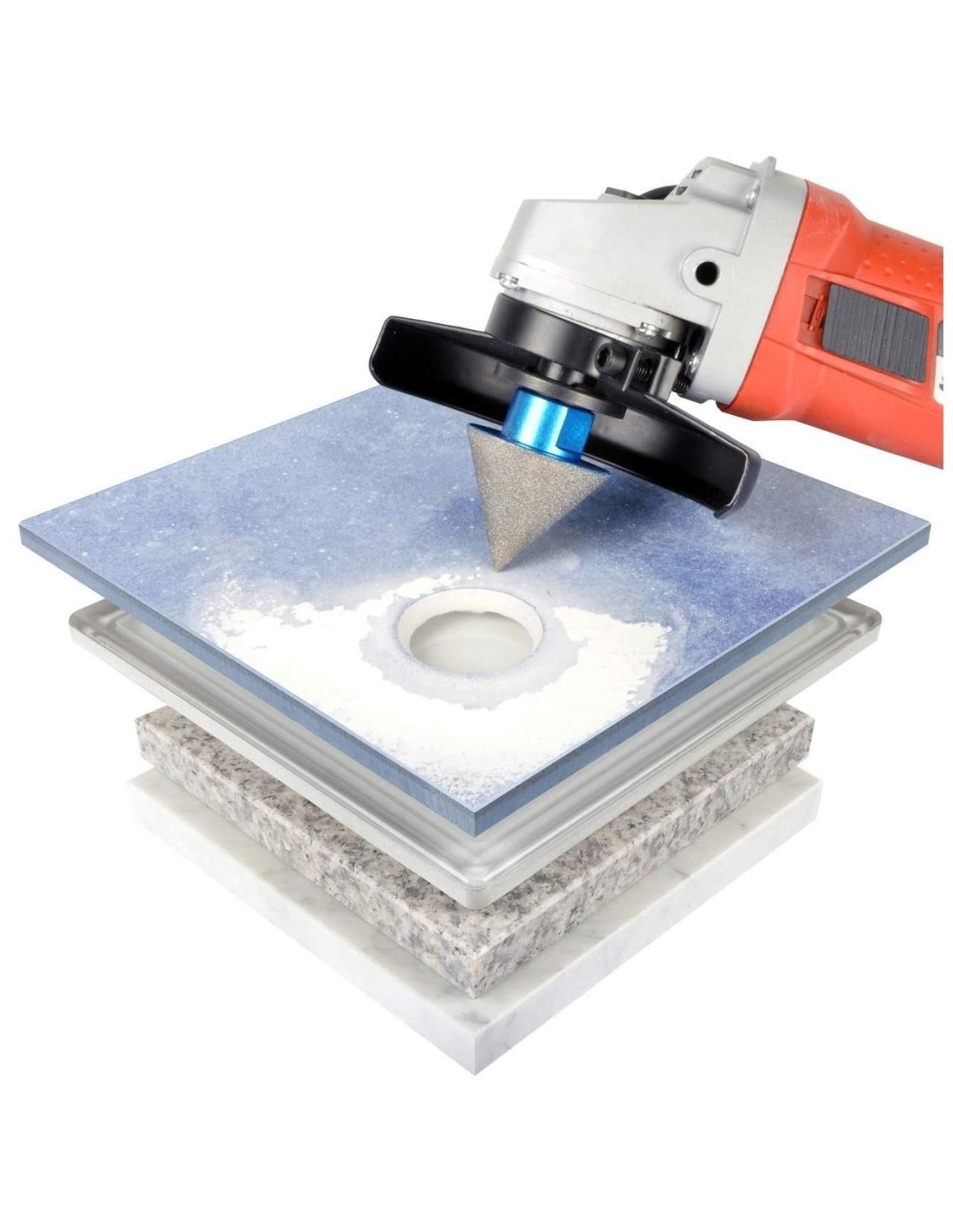 Bisel Los chaflanes de facilidad y el estrés alivian los agujeros rugosos en losetas de vidrio, cerámica y porcelana.