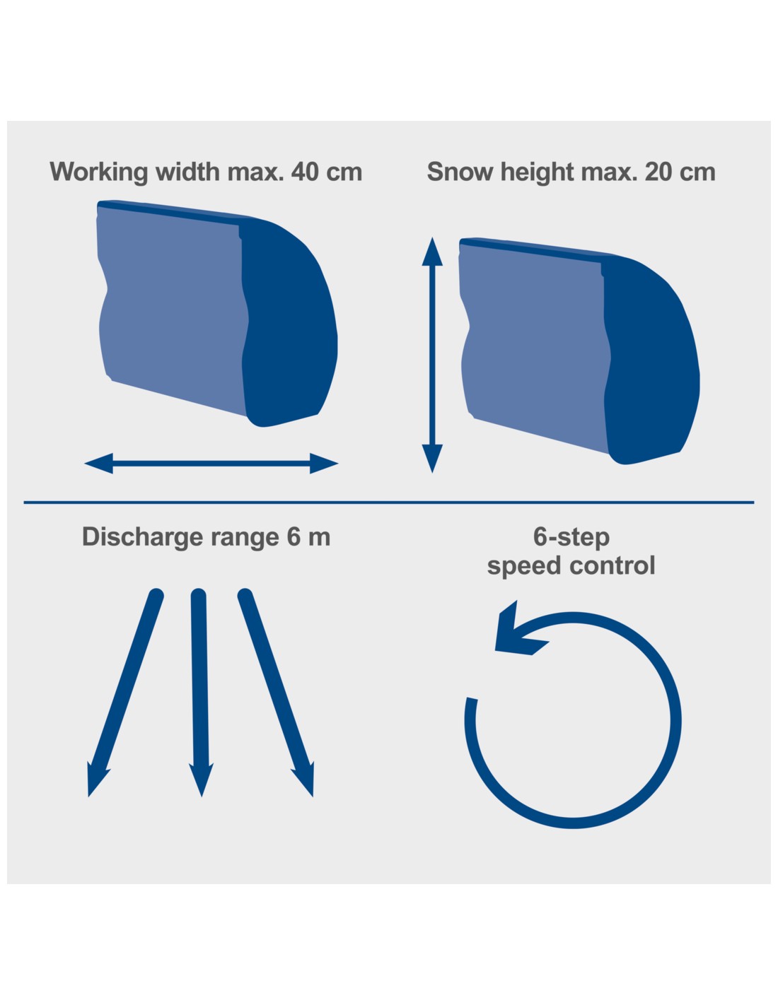 Le kit comprend : 1 fraise à neige sans balais Scheppach BC-SNB410-X 20 V, série ixes, 2 batteries lithium Scheppach SBP4.0 20 V, 4,0 Ah, série ixes, 1 chargeur double 20 V, 4,5 A SDBC4.5 20 V, série ixes. La fraise à neige sans balais Scheppach BC-SNB410-X est une aide pratique pour l’hiver, permettant de déneiger rapidement et facilement les allées, les terrasses ou les trottoirs. Le sens d’éjection de la neige peut être facilement réglé à l’aide d’un levier de commande : droite, gauche ou droit. Grâce au régulateur de vitesse, la fraise à neige s’adapte aux conditions et à la hauteur de la neige. L’interrupteur de sécurité à 2 points protège également contre toute mise en marche involontaire. La fraise à neige sans balais est alimentée par un puissant moteur sans balais. Ce moteur sans balais garantit un rendement particulièrement élevé, une autonomie prolongée, une longue durée de vie et une usure réduite. Faisant partie de la série Scheppach IXES 20 volts, toutes les batteries et chargeurs de la série système peuvent être combinés avec la fraise à neige. - Puissante fraise à neige sans fil : l'outil idéal en hiver pour déneiger les allées, les cours ou les trottoirs - Moteur sans balais sans entretien offrant un rendement particulièrement élevé, une durée de fonctionnement plus longue, une longue durée de vie et une faible usure - Fonctionne sans fil avec la série Scheppach IXES 20 volts : toutes les batteries et tous les chargeurs de la série système peuvent être combinés avec la fraise à neige sans fil - Sens d'éjection réglable : gauche - droite - droit - Réglage de la vitesse sur 6 niveaux, en fonction de l'épaisseur de la neige et des conditions d'enneigement - L'interrupteur de sécurité à 2 points protège contre toute mise en marche involontaire - Le couvercle de la batterie à fermeture magnétique protège de la neige et de l'humidité - Hauteur de neige maximale 20 cm - La poignée supplémentaire permet une utilisation à deux mains - Autoportante - Distance de projection maximale 6 m - Poignée ergonomique avec surface Softgrip antidérapante - Poignée de transport intégrée pour un transport facile - Batterie et chargeur vendus séparémentDonnées techniquesTension : 40 V (2 x 20 V)Type de moteur : BrushlessLargeur de travail : 400 mmHauteur maximale de la turbine : 200 mm Distance maximale d'éjection de neige : 6 m Réglage de la vitesse : 6 niveaux Dimensions : 1200 x 530 x 175 mm Dimensions de l'emballage : 650 x 350 x 400 mm Poids brut/net : 6,4/7,5 kg Batterie lithium 20 V 4,0 Ah série ixes Scheppach sbp4.0 Une batterie pour tous les appareils : la batterie SBP4.0 est compatible avec tous les appareils de la série Scheppach IXES 20 V. Avec 20 V et 4,0 Ah, cette batterie puissante garantit des performances constantes. La gestion innovante des cellules individuelles garantit une utilisation efficace et une durée de vie maximale des cellules lithium-ion. Le risque minimisé de décharges excessives et profondes augmente la durée de vie de la batterie. Le niveau de charge actuel est visible sur l'écran LED à 3 niveaux. - Puissante batterie lithium-ion 20 V/4,0 Ah - Utilisation universelle : une batterie pour la série Scheppach IXES 20 volts - Capacité La capacité restante de la batterie est facilement lisible sur l'écran LED à 3 niveaux. La gestion individuelle des cellules protège contre la surchauffe et la surtension et assure en même temps une charge et une décharge uniformes des cellules. Durée de vie de la batterie plus longue grâce à un risque minimal de décharge excessive et profonde. Économie des ressources grâce à l'utilisation d'un seul système de batterie. Temps de charge d'environ 60 à 120 minutes (selon le chargeur). Le faible poids garantit un travail confortable. Haute résistance aux chocs et toucher agréable grâce au boîtier caoutchouté. Boîtier protégé contre la poussière et la corrosion. Caractéristiques techniques : Tension de la batterie : 20 V. Capacité : 1200 mAh. Capacité de la batterie : 4,0 Ah Temps de charge : env. Chargeur double 20 V pour batteries Scheppach IXES 2,0/4,0 Ah SDBC4.5A Avec le chargeur double Scheppach SDBC4.5A, vous pouvez charger deux batteries simultanément et très rapidement. Ce chargeur pratique peut être utilisé pour toutes les batteries de la série Scheppach IXES 20 volts. Grâce à la fonction de charge rapide, les batteries se chargent jusqu'à 40 % plus rapidement. L'état de la batterie et de la charge peut également être lu sur l'écran LED clair. La gestion intelligente de la charge garantit également une plus grande autonomie et une durée de vie plus longue. - Chargeur double compact 4,5 A pour charger simultanément deux batteries lithium-ion, même de capacités différentes - Convient à toutes les batteries de la série Scheppach IXES 20 volts - Charge les batteries en très peu de temps - Batterie 2,0 Ah environ Temps de charge : environ 35 minutes / batterie 4,0 Ah - environ 60 minutes de temps de charge - La fonction de charge rapide pratique assure un temps de charge jusqu'à 40 % plus rapide - L'indicateur LED indique l'état de charge de la batterie - La gestion intelligente de la charge garantit une durée de vie plus longue de la batterie - Support mural intégré Données techniques : Tension nominale : 230 - 240 V / 50 Hz (entrée) / 21,5 V (sortie) Courant nominal : 4,5 A (sortie) Puissance nominale : 240 W Dimensions (L x P x H) : 240 x 145 x 85 mm Poids net/brut : 1,0/1,2 kg