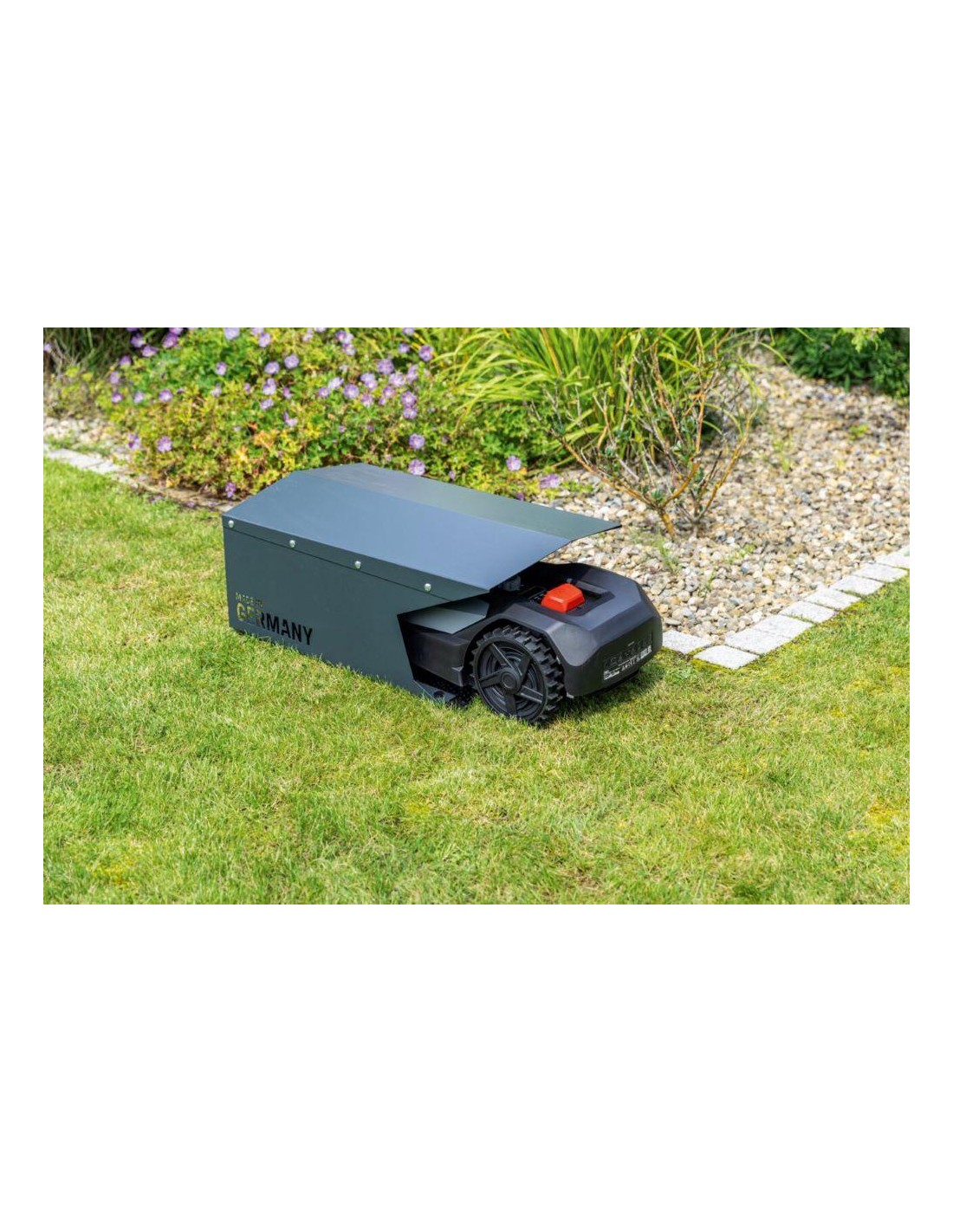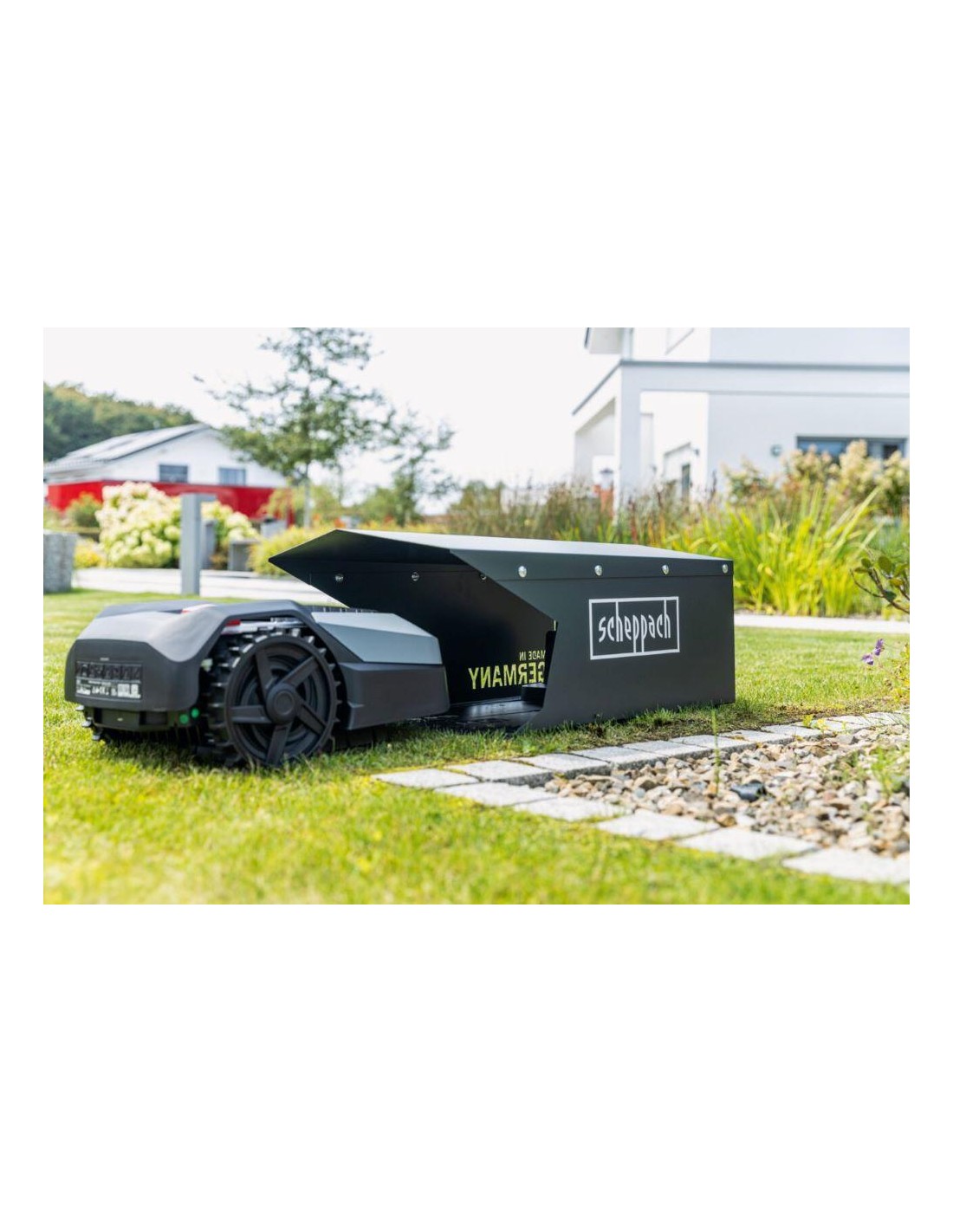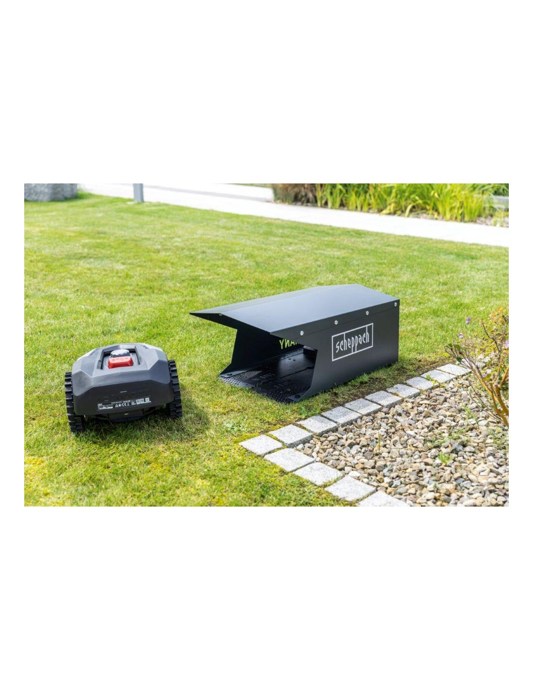 - Garage protégé contre les intempéries pour les robots tondeuses Scheppach