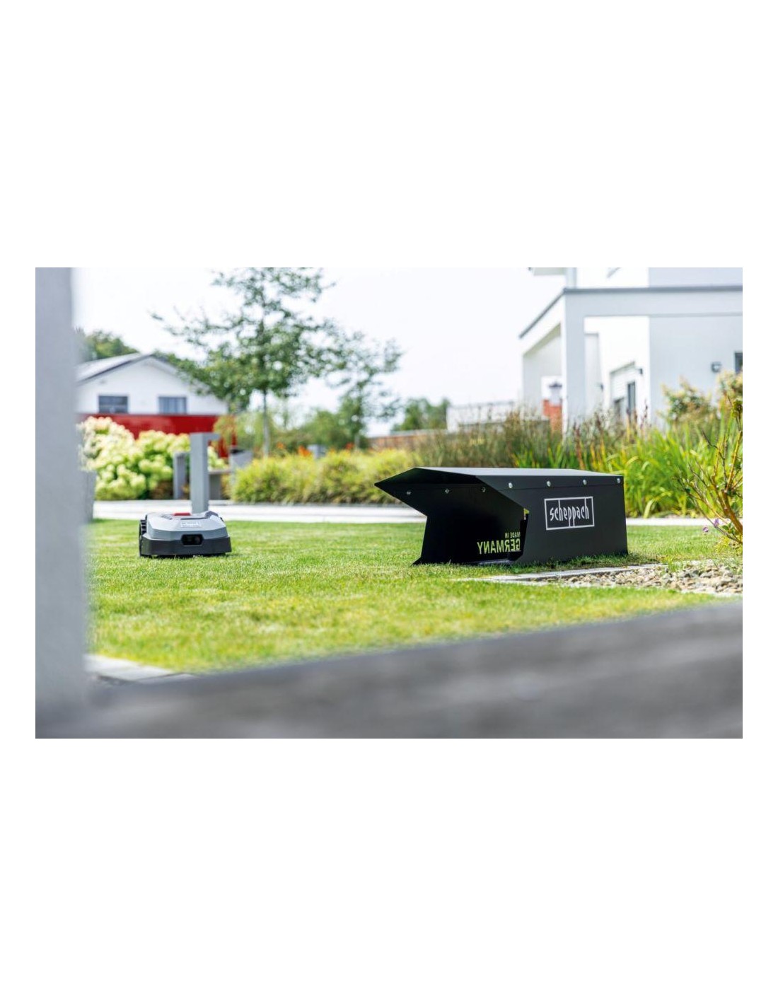 Le garage «Robohome» est le complément idéal aux robots tondeuses Scheppach. Protège de manière fiable la tondeuse à gazon et la station de recharge contre les précipitations, l'humidité et et le soleil brûlant.