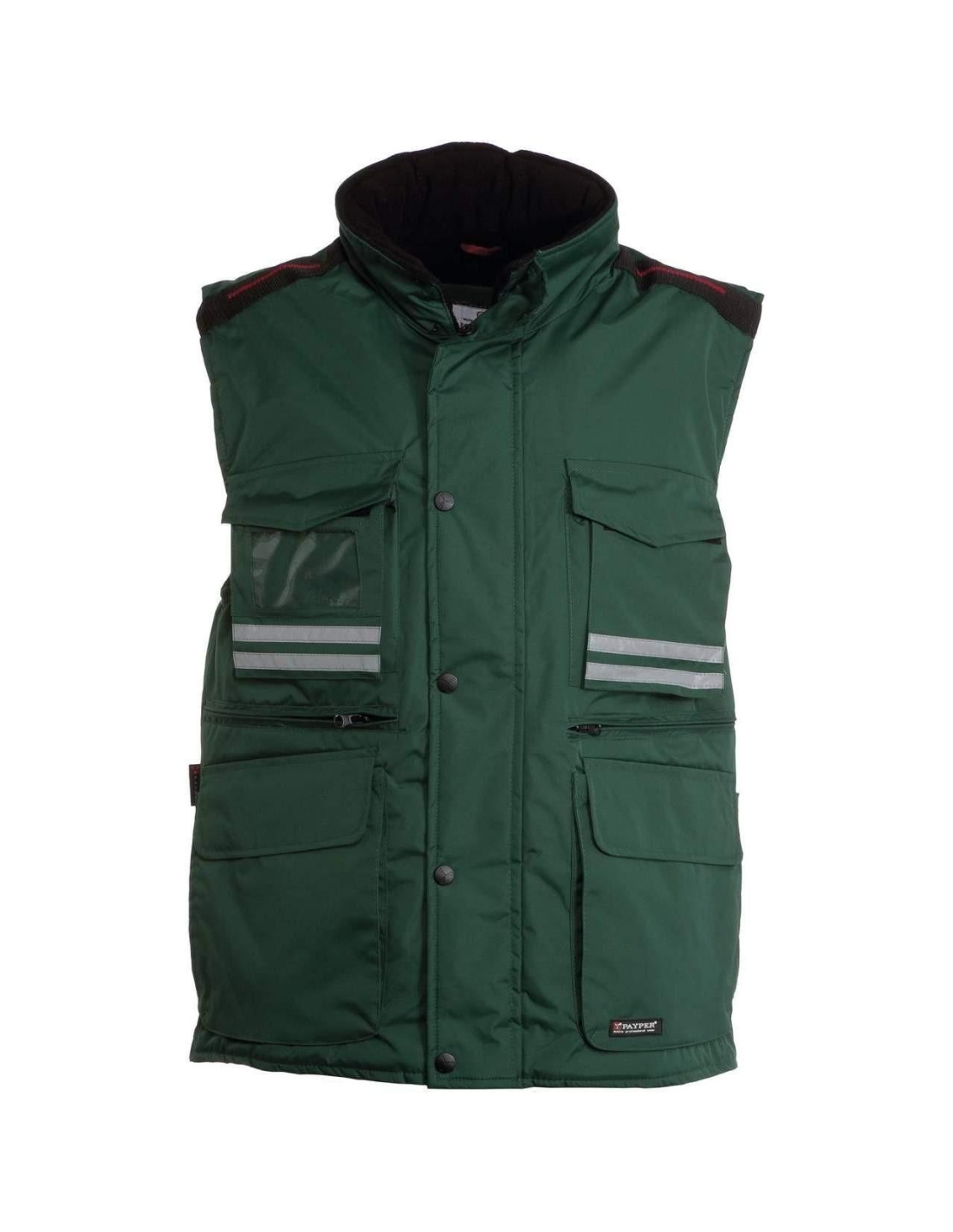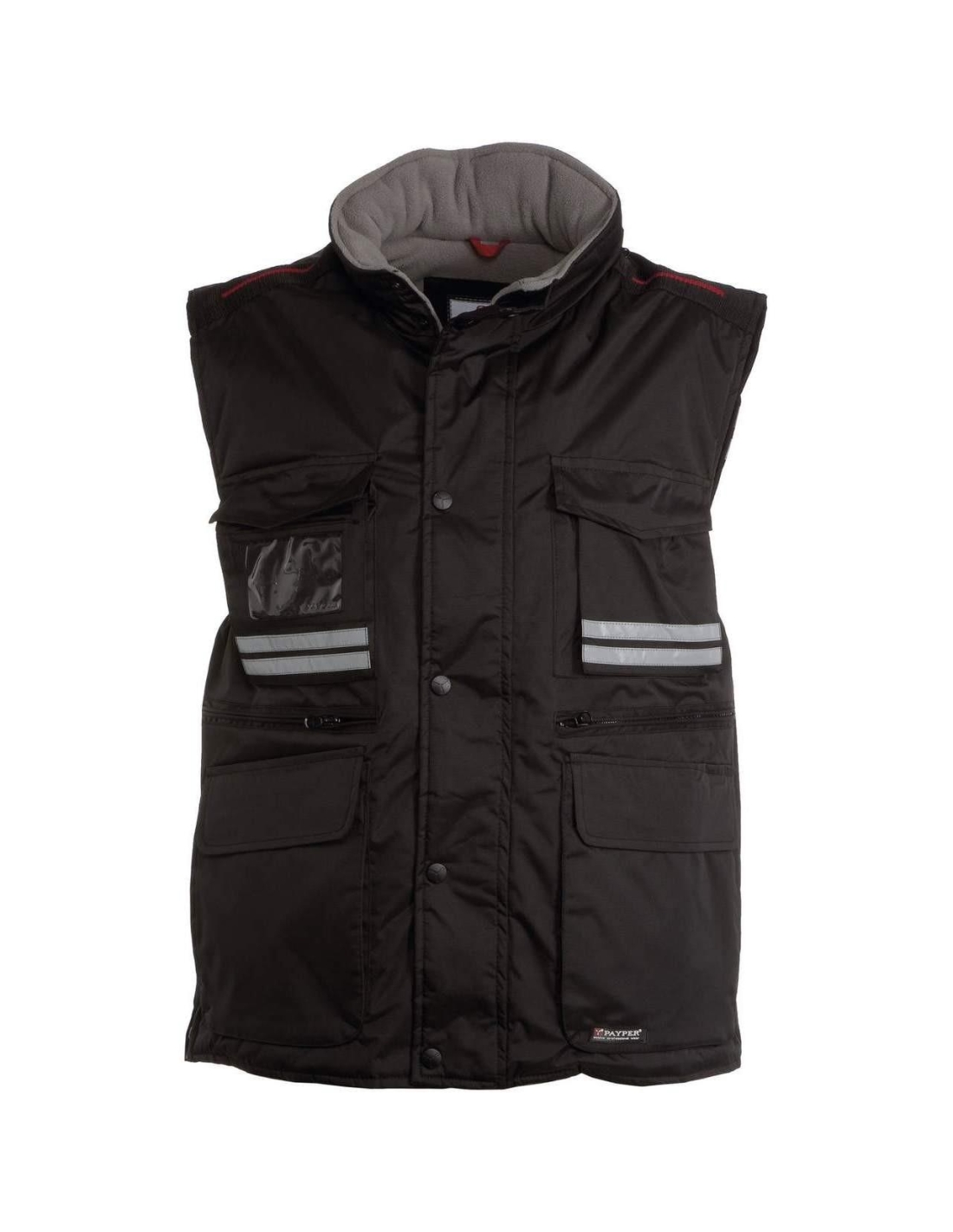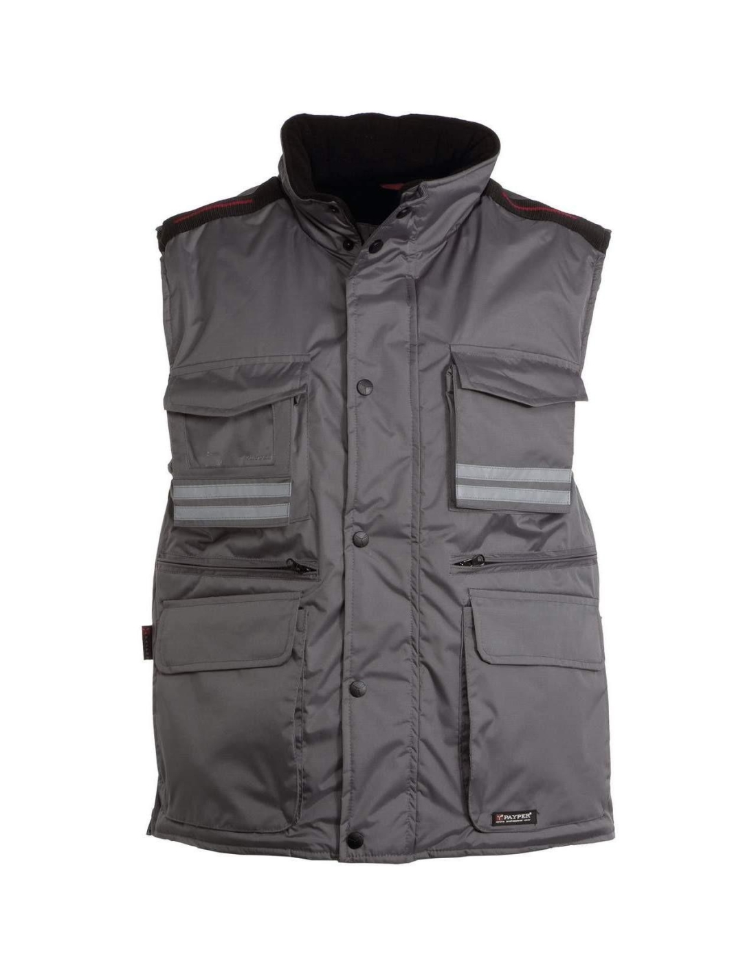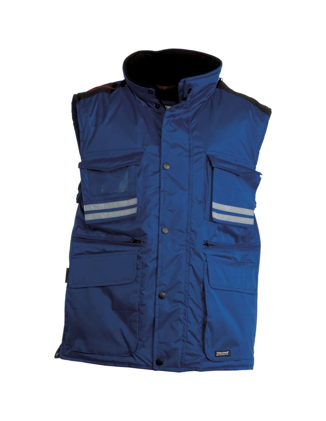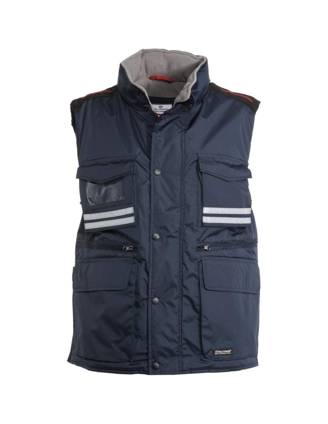 Gilet avec capuchon modelé détachable et/ou refermable dans le col, bandes réfléchissantes grises à l’avant et à l’arrière, fente latérale avec soufflet et zip; neuf poches externes dont deux «TATANKA», une avec porte badge réversible et deux avec Zip et renfort à l’intérieur; intérieur matelassé, col, dos et chauffe-reins en Micropile, inserts transpirants sous les bras, coulisse en taille et Zip interne pour faciliter impressions et broderies.