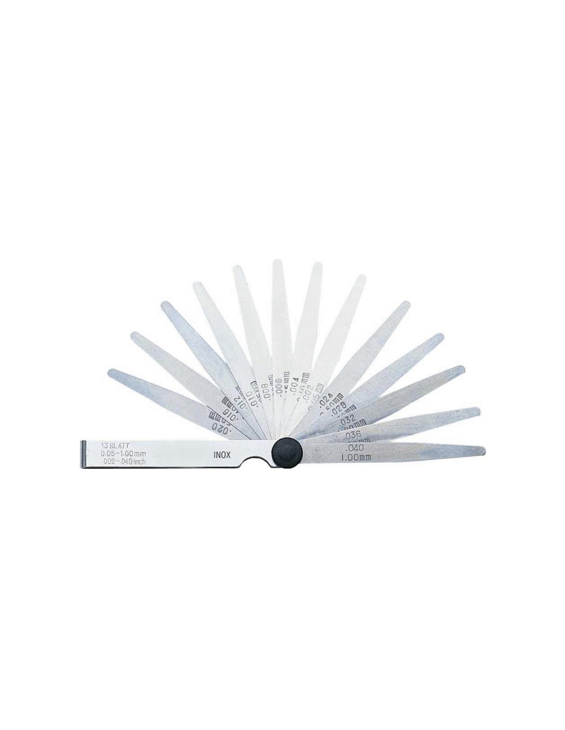 Lames de forme conique, boîtier nickelé avec écrou de blocage, mesures en mm et pouces sur chaque lame.