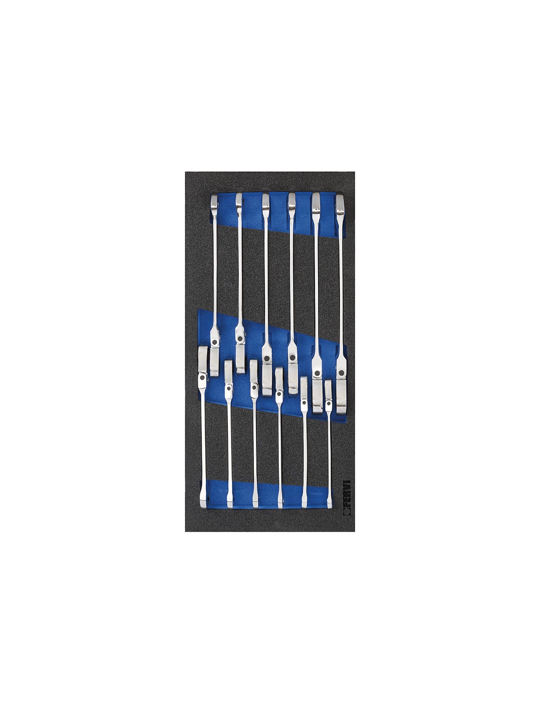 Serie 12 chiavi a cricchetto 8-19 mm in termoformato morbido Fervi tm01/056