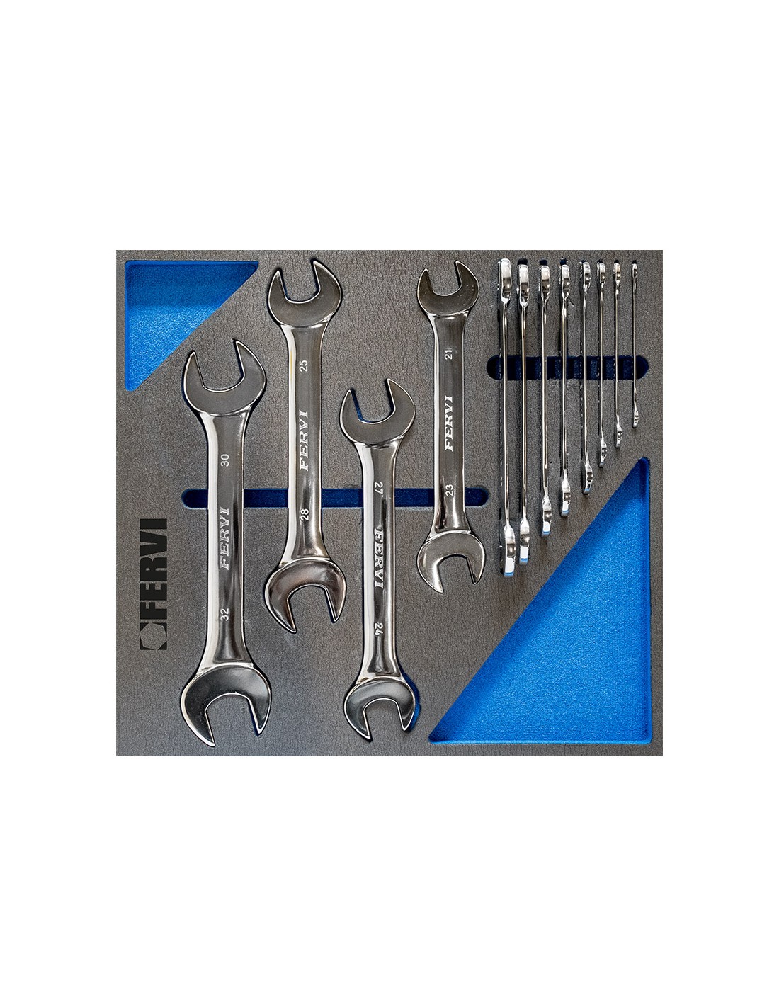 Serie 12 chiavi fisse lucide 6/7-30/32 mm in termoformato morbido Fervi tm01/006