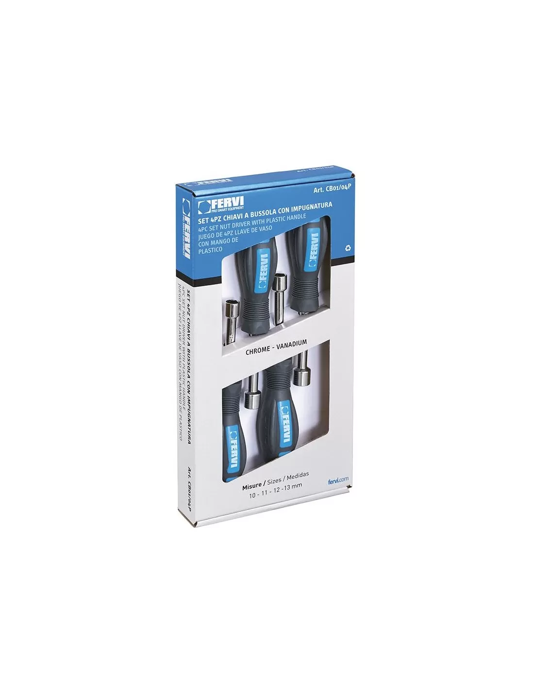 Jeu de 4 cles tournevis a douille 10 - 13 mm avec manche Fervi CB01/04P