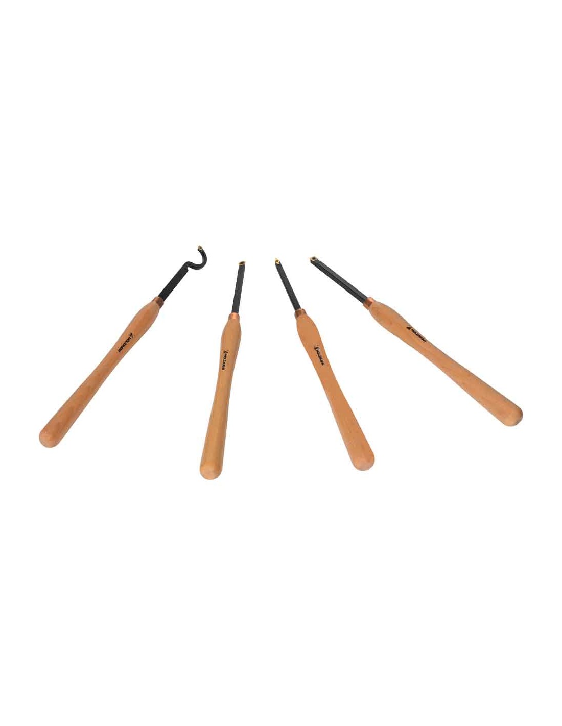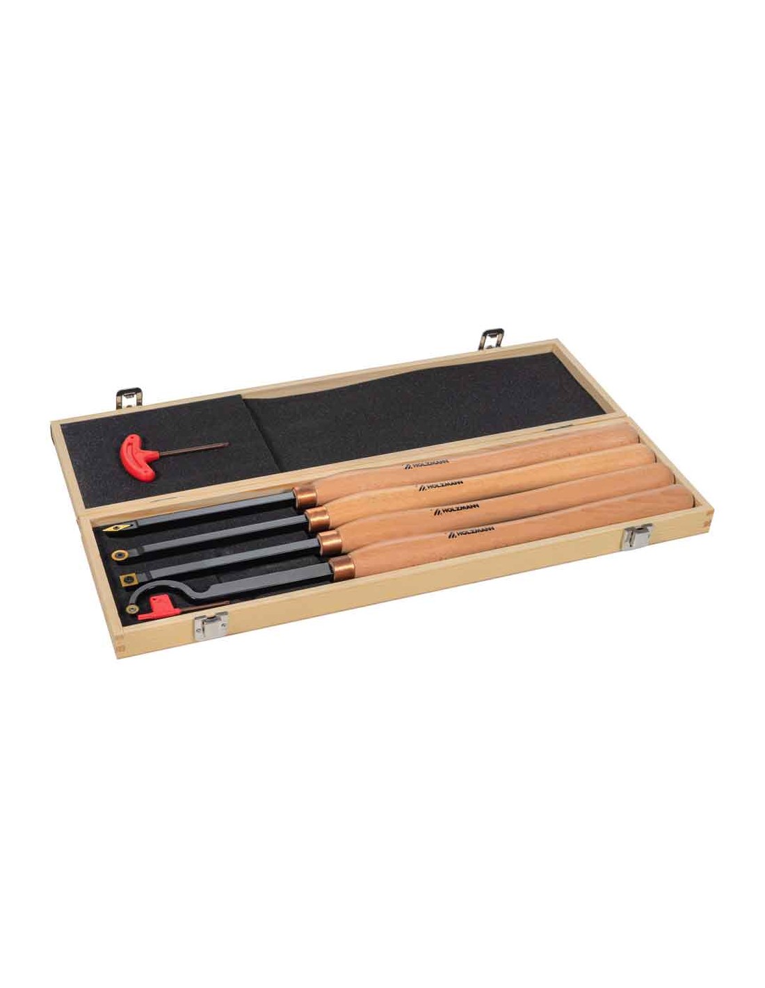 Le jeu d'outils de tournage HOLZMANN 4 pièces (taille XL) avec plaquettes en carbure interchangeables est idéal pour le tournage du bois. L'ensemble comprend un outil de tournage avec une plaquette carrée, une plaquette ronde (tige droite/crochet) et une plaquette losangée.