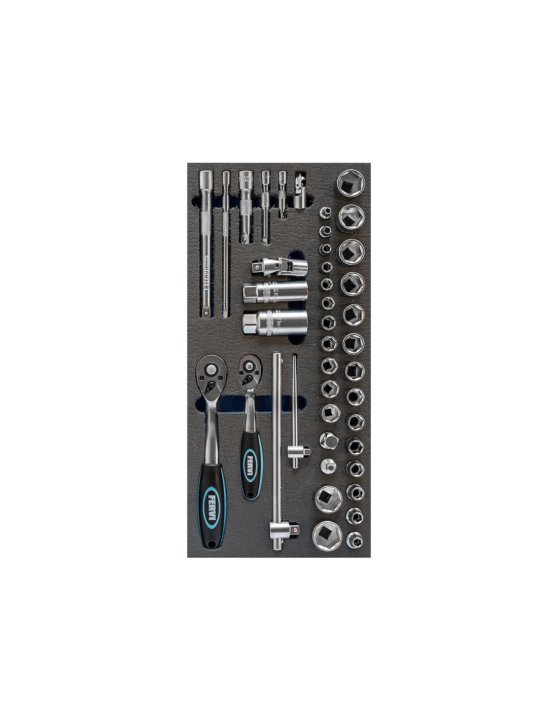 Jeu de 42 cles a douilles 1/4-3/8 po souples thermoformees Fervi tm01/024