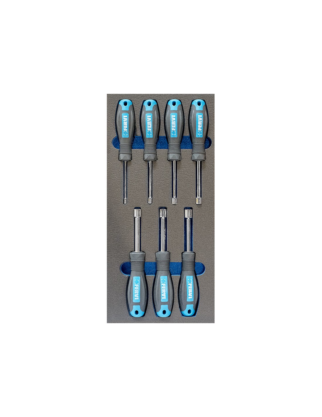Serie 7 cacciaviti a bussola 55-13 mm in termoformato morbido Fervi tm01/027