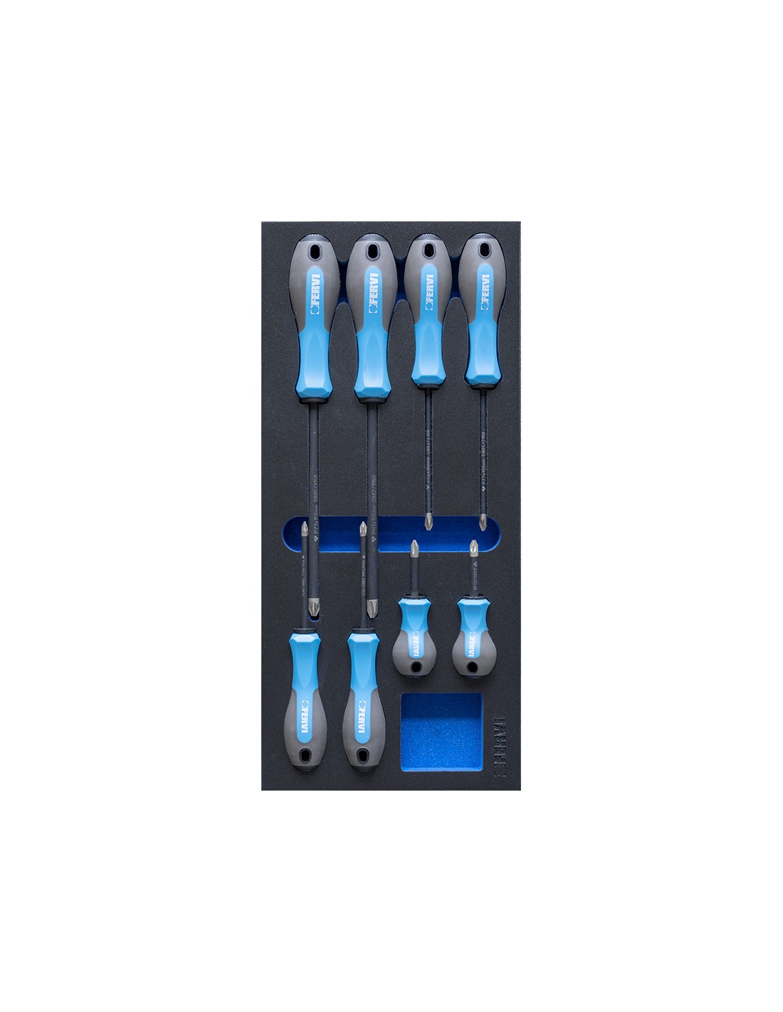 Jeu de 8 tournevis cruciformes diamantes en thermoforme Fervi tm01/045