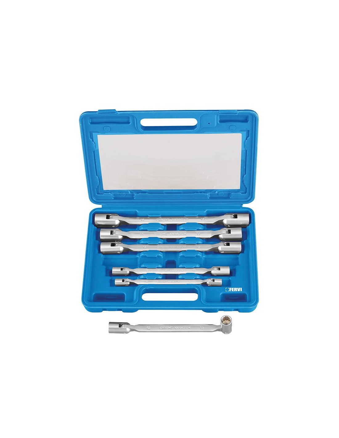 Serie de douilles a cliquet multiprofils abaissees 1/4 45 - 13 mm Fervi 0589