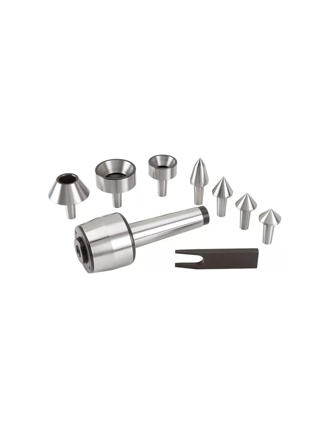 Principalement utilisé dans les tours dans le but de stabiliser des pièces longues et fines, plus sujettes à la flexion ou aux oscillations incontrôlées provoquées par les forces générées pendant l'usinage. Complet avec 7 inserts interchangeables et extracteur pour les inserts.