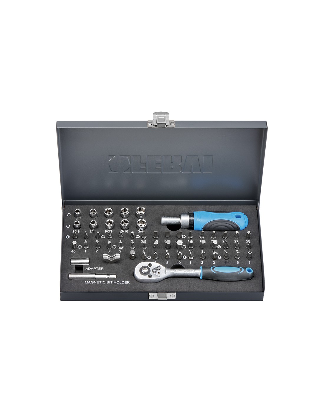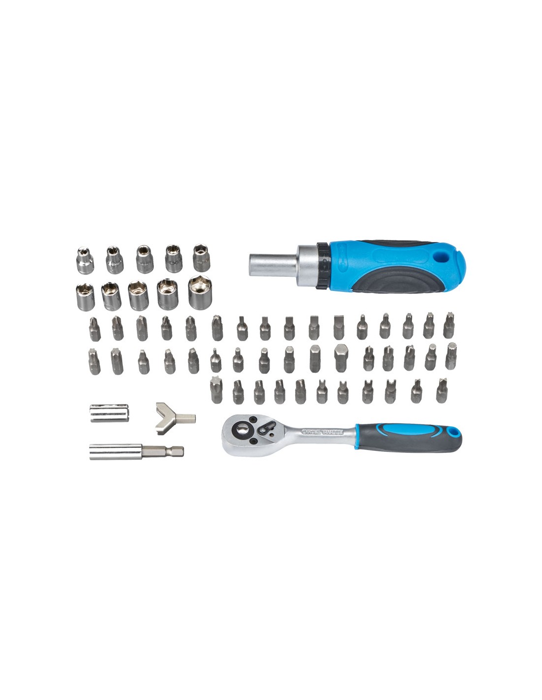 Avec porte-embout et poignée à cliquet.