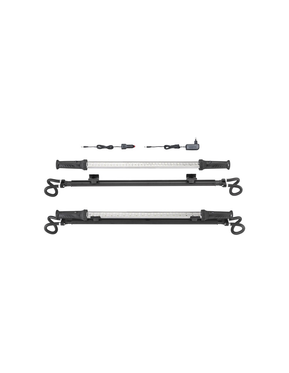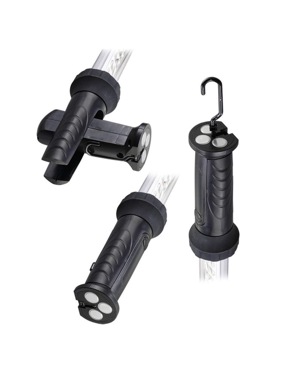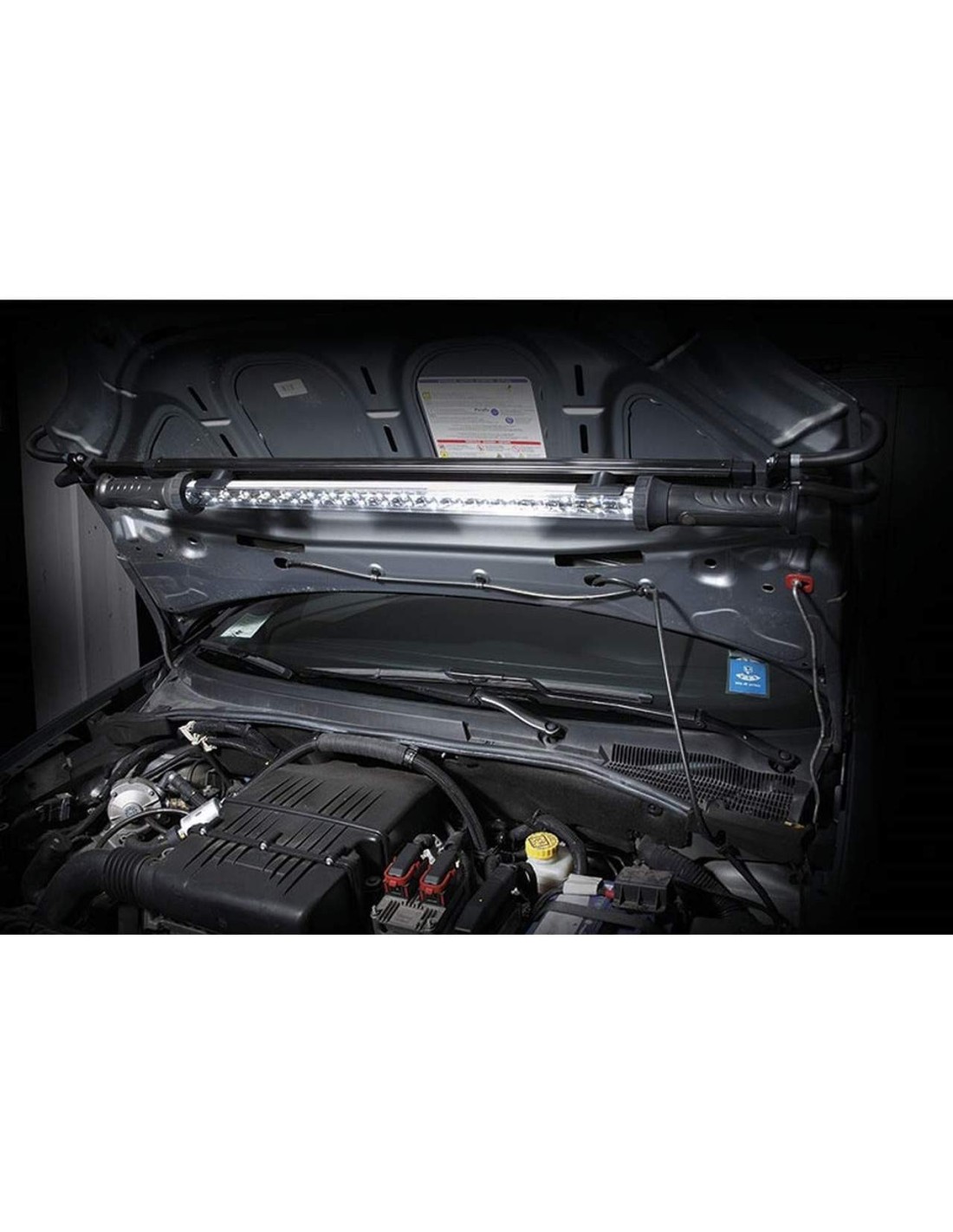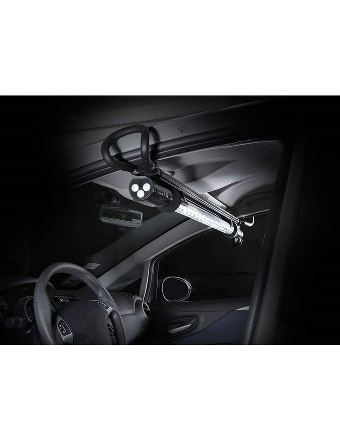Fabriqué en ABS et polycarbonate, avec batterie au lithium, adaptateur de prise de voiture 12 V et adaptateur domestique 230 V, voyant de charge.