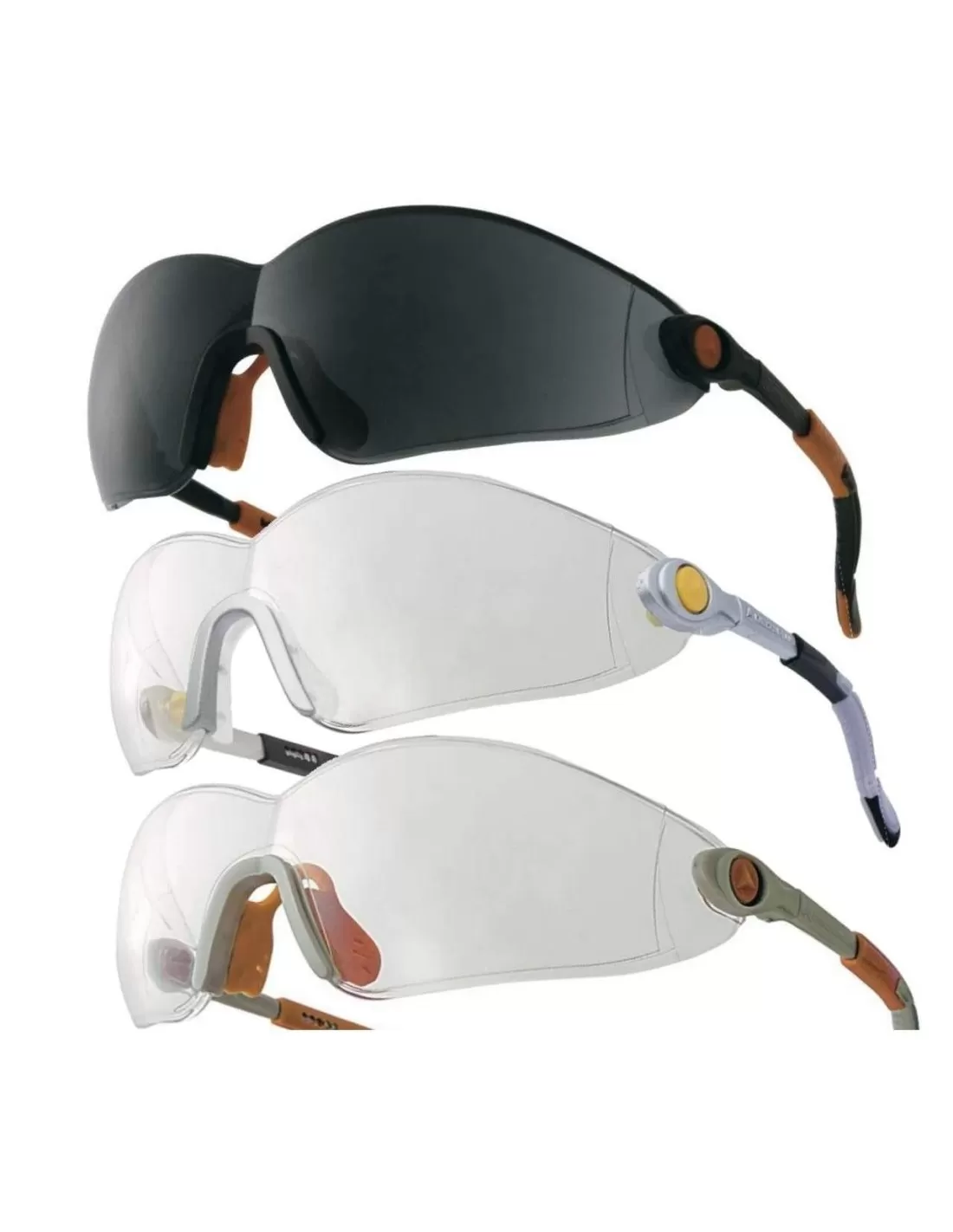 DESCRIPTION Lunettes polycarbonate monobloc. Branches nylon inclinables et ajustables. Embouts spatulés. Pont nasal TPE souple extra confort. Protections latérales. AM - AS - UV400