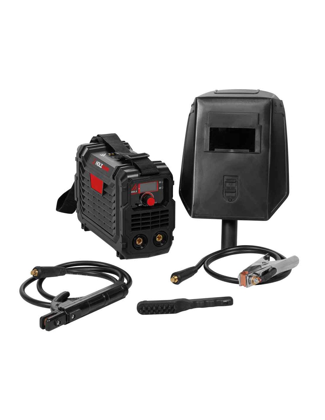 Inclus : câble de terre (1 m), porte-électrode (1,5 m), marteau burineur avec brosse