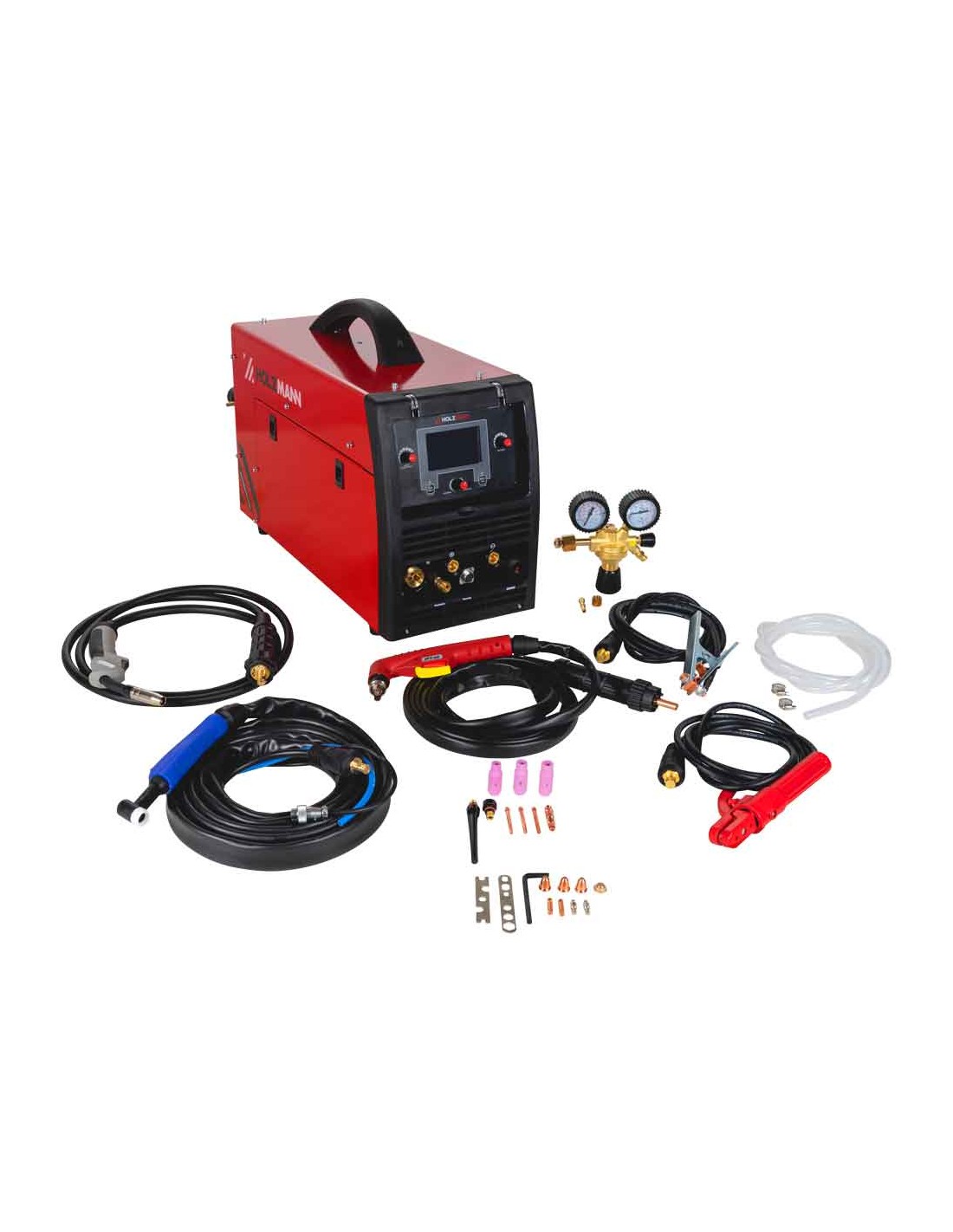 Avec le système de soudage HOLZMANN MultiSA200ACDC, vous pouvez réaliser des découpes plasma, des soudures MMA (électrode), MIG (gaz de protection) et même TIG. Un ensemble complet et de haute qualité, comprenant une poignée de transport/écran LCD et un porte-torche/électrode adapté.