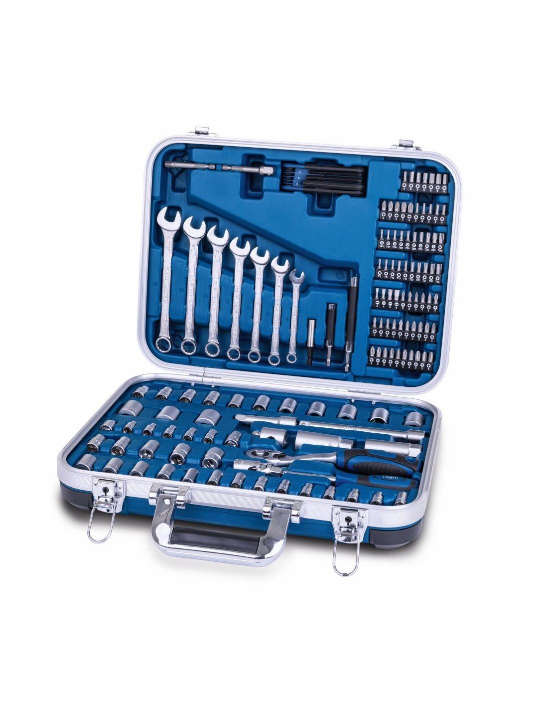 Inclus sont, entre autres, divers inserts de clé à douille, divers inserts d'embouts, un jeu de vis Allen et bien plus encore.