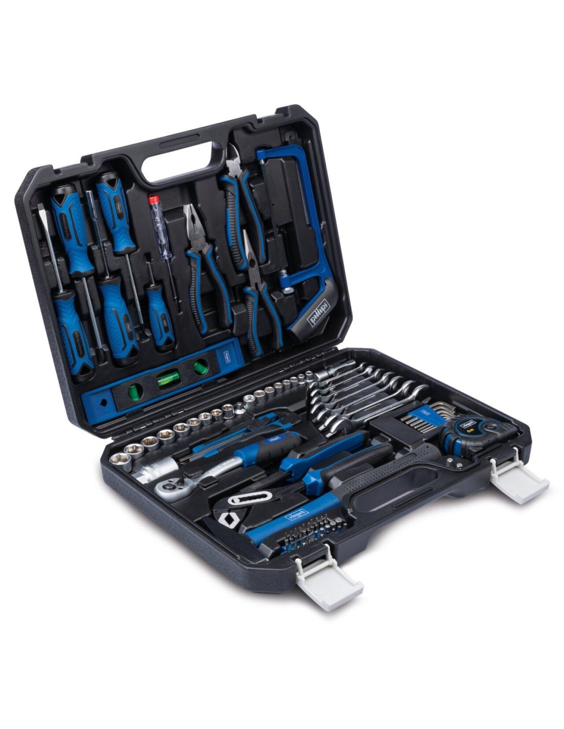 La mallette à outils Scheppach WZK120 est un ensemble complet de 97 outils pratiques, parfaits pour une utilisation à la maison, sur un chantier de construction, en atelier ou en camping. Cet assortiment d'outils est enfermé dans un boîtier en plastique robuste, conçu pour un maximum de commodité. Avec un poids de seulement 5,3 kg et des dimensions compactes de 425 x 320 x 80 mm, le WZK120 est idéal pour une utilisation mobile et facile à transporter.