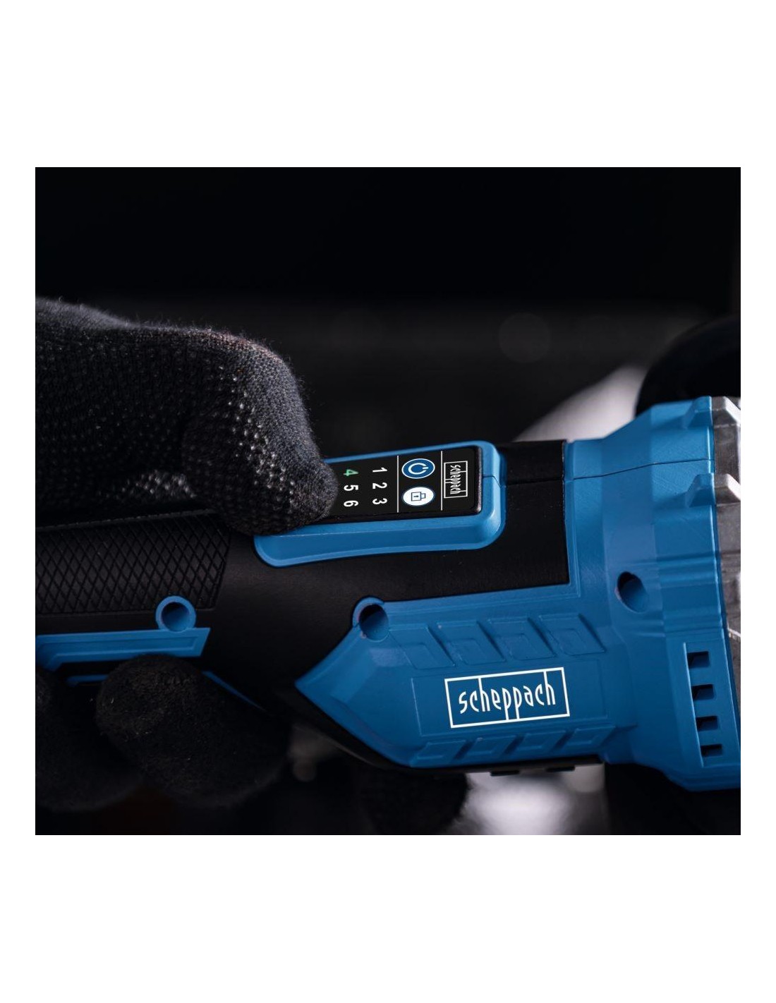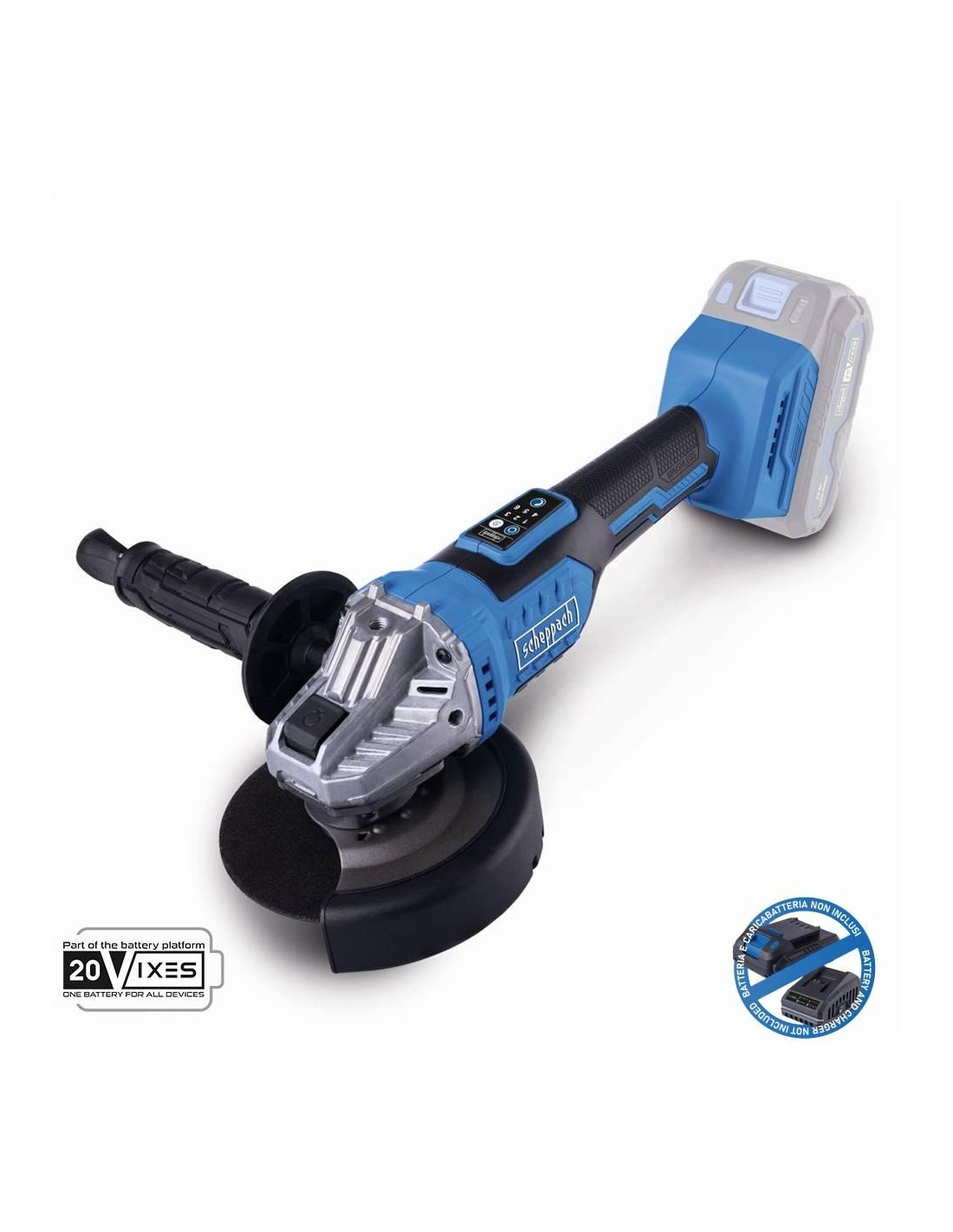 - Travail sans fil avec la série Scheppach IXES 20 Volts – toutes les batteries et chargeurs appartenant à cette série de systèmes peuvent être combinés avec la meuleuse d'angle sans fil