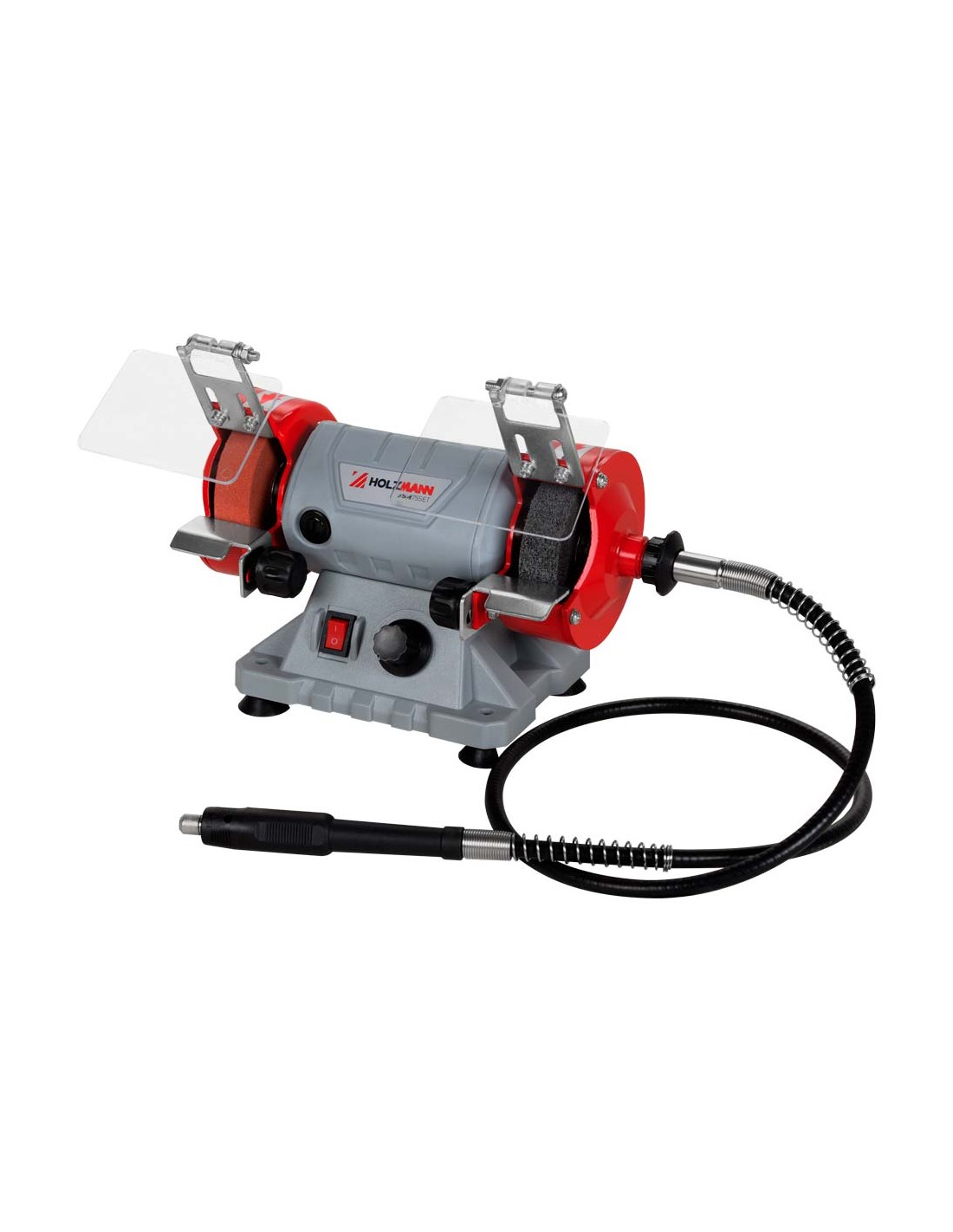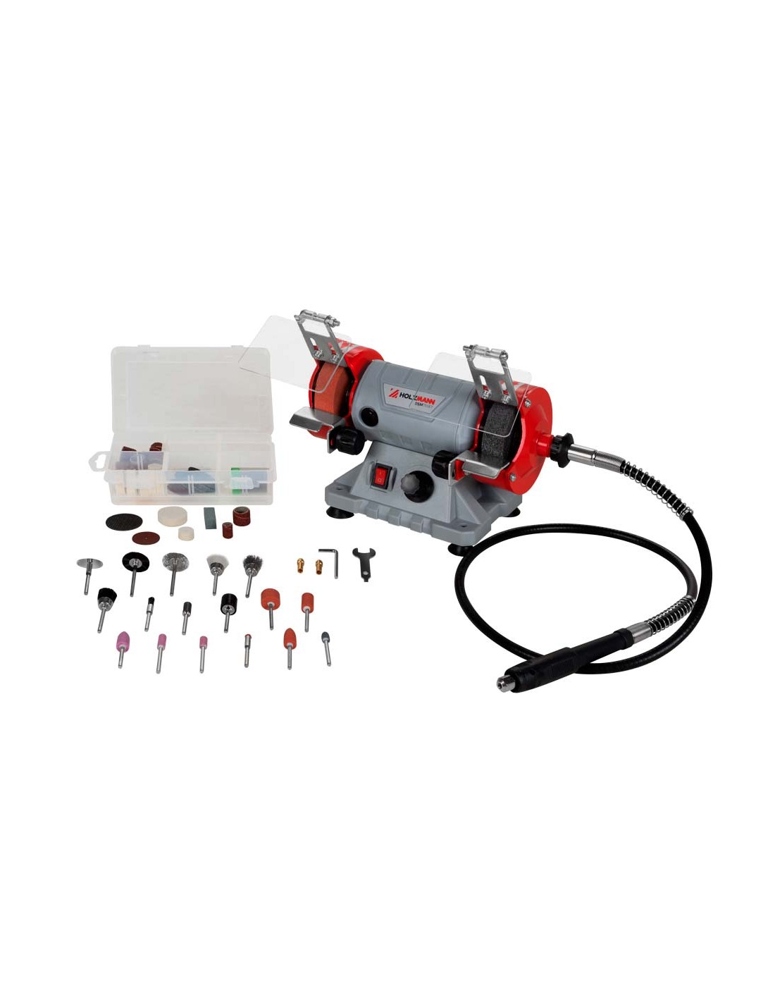 La mini meuleuse d'établi HOLZMANNN DSM7SET_230V avec arbre flexible et jeu d'accessoires de 110 pièces. Un outil polyvalent (affûtage, gravure, ponçage, etc.) : tout est possible avec un seul outil.
