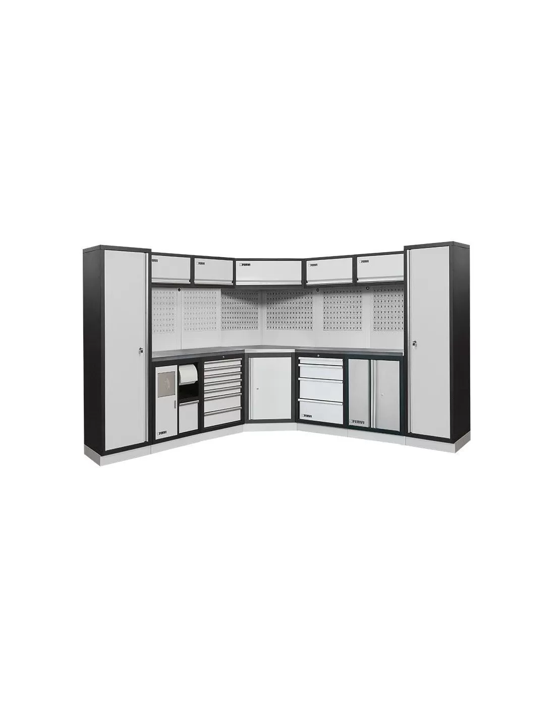 Mobilier atelier modulable avec plateau armoires et tiroirs en inox Fervi a008l