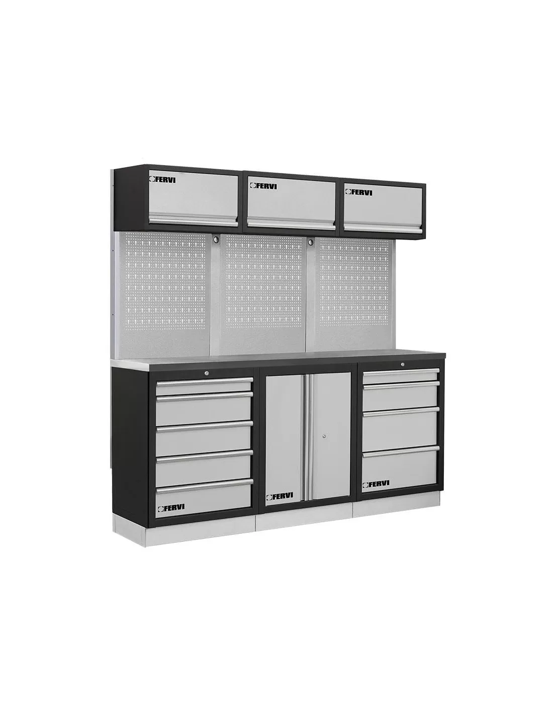 Mobilier atelier modulable avec plateau armoires et tiroirs en inox Fervi a008n