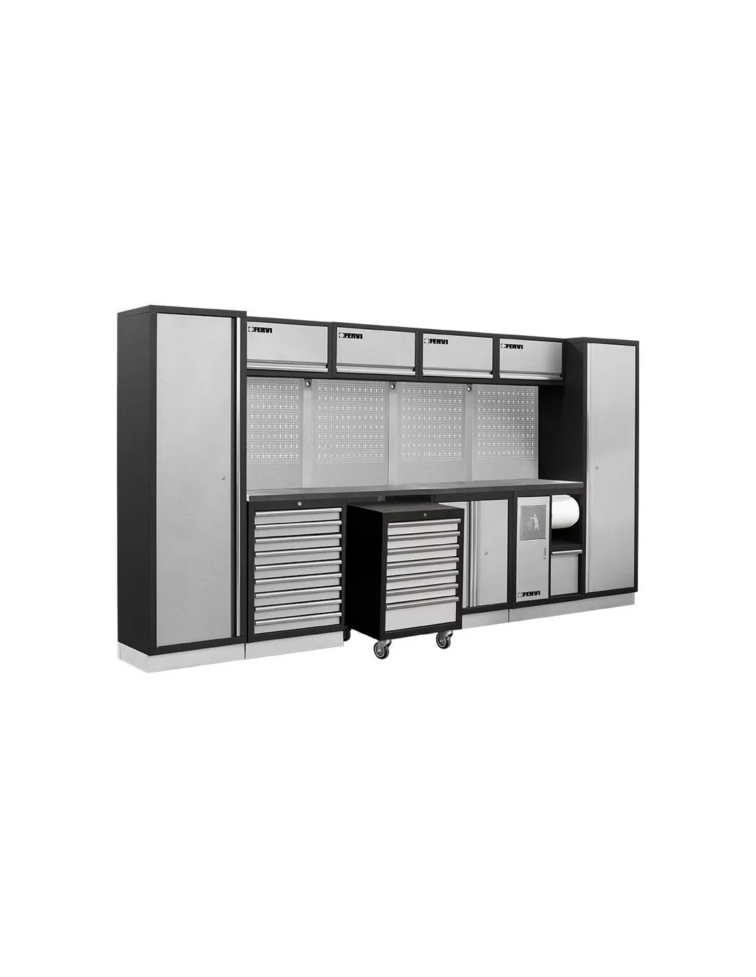 Mobilier atelier modulable avec plateau armoires et tiroirs en inox Fervi a008p