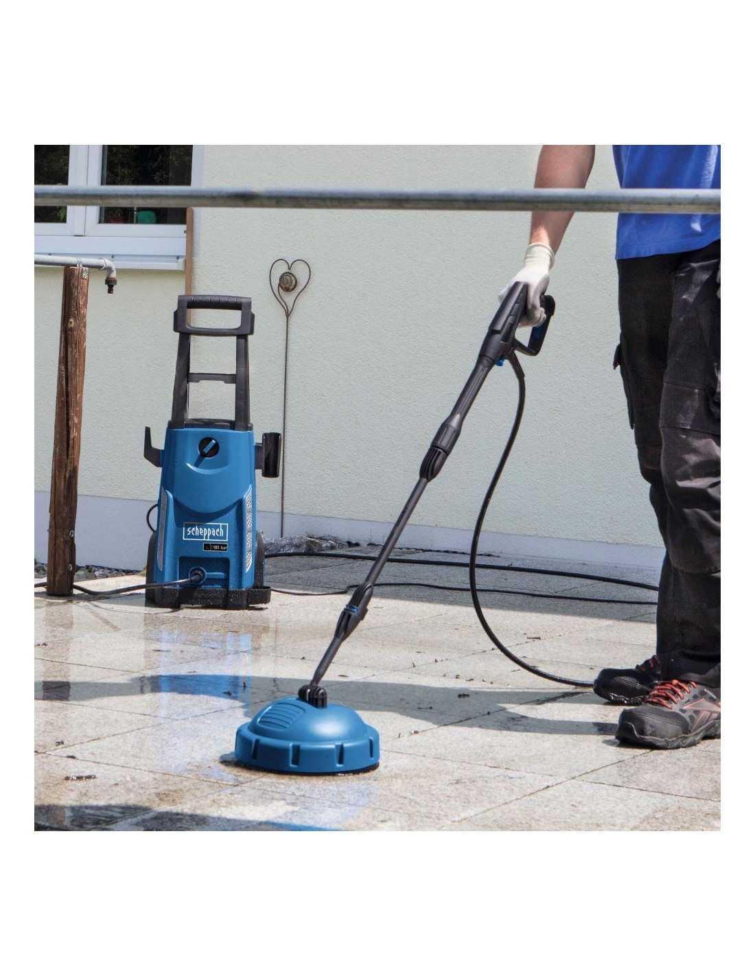 Le moteur électrique intégré de 2 400 watts délivre une pression maximale de 180 bars. Cela élimine rapidement la mousse, les algues, la saleté et la crasse. Il permet également d'éliminer la rouille, le calcaire et les couches de peinture.