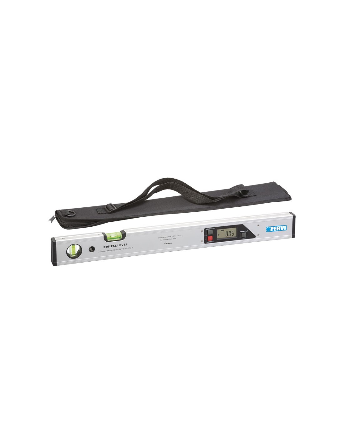 Magnétique avec base en aluminium fraisé, arrêt automatique, rétroéclairage, 2 fioles, fonction ''hold'', 0° et 90° avec son, lecture : absolue, ref, pourcentage, mm/m et in/ft, sac de transport.