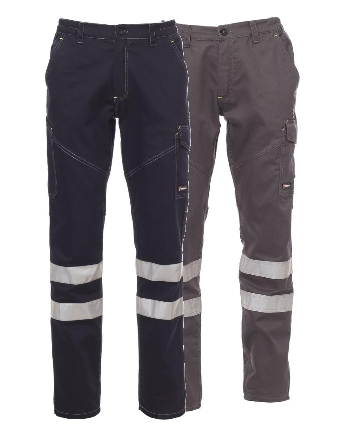 Pantalon unisexe, hiver, avec bandes réfléchissantes de cat. 1, élastiques latéraux et passants à la taille, fermeture par zip et bouton en plastique, deux poches de coupe classique sur le devant, une poche latérale LOCK SYSTEM, un porte-mètre, deux poches arrière, une ouverte et une avec rabat et velcro, inserts et surpiqûres en contraste, bandes réfléchissantes sur poche arrière, doubles coutures.
