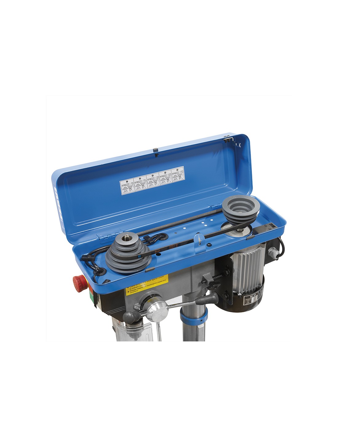Déplacement vertical de la table avec crémaillère, table basculante. Installation électrique avec circuit 24V séparé pour les commandes embarquées de la machine.