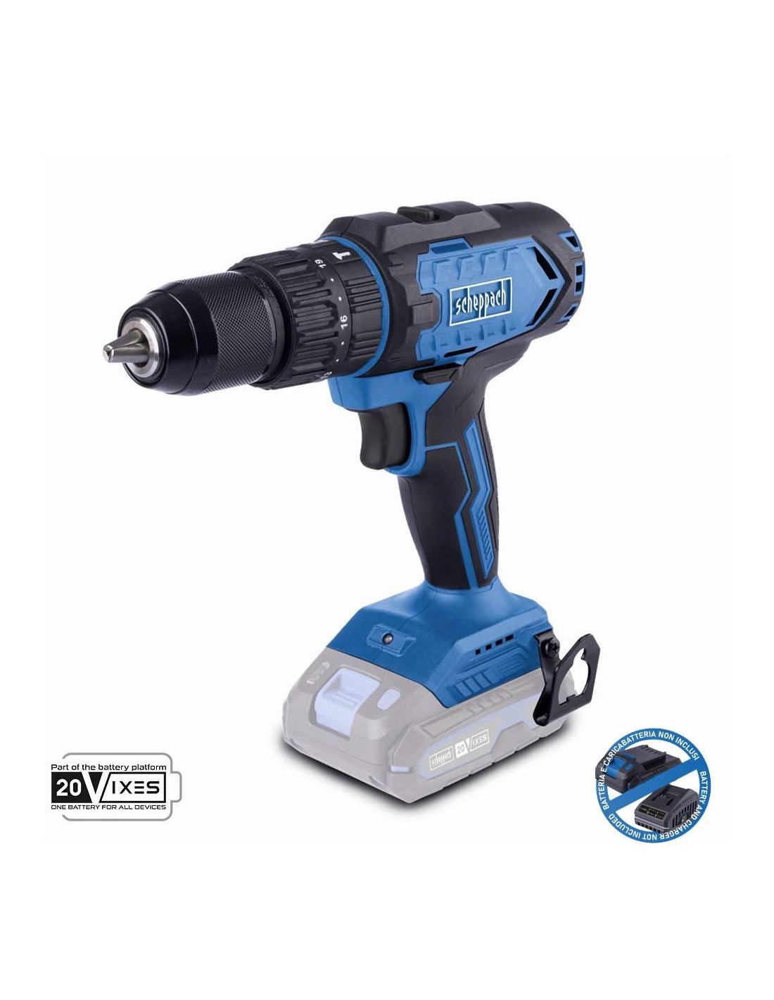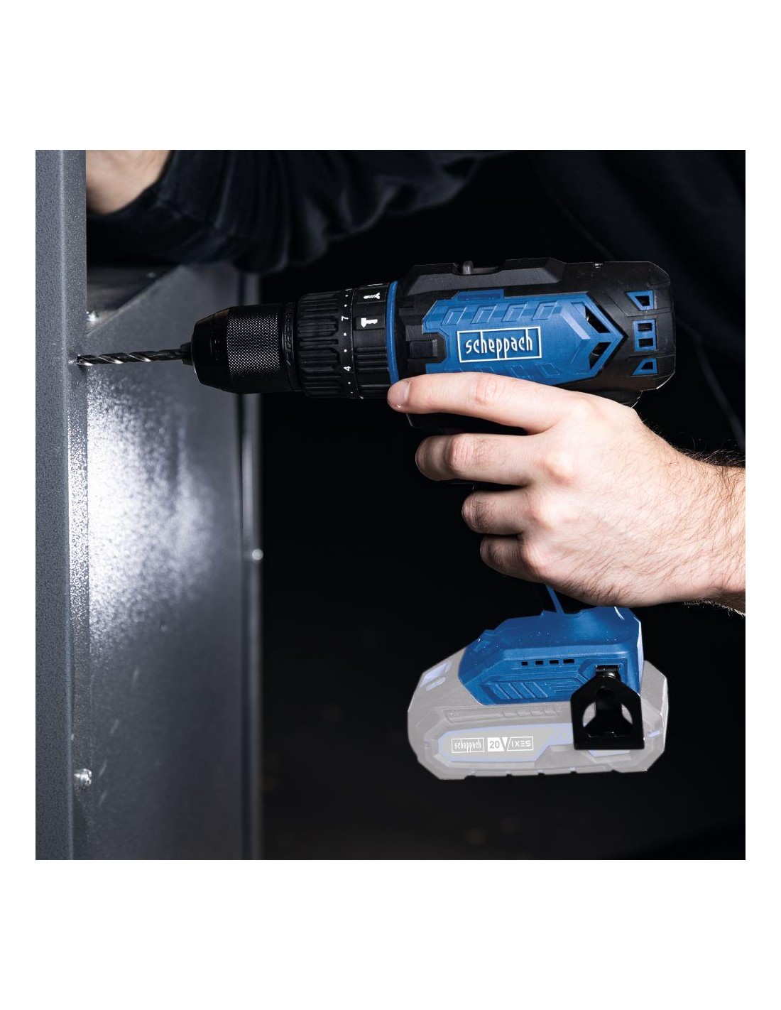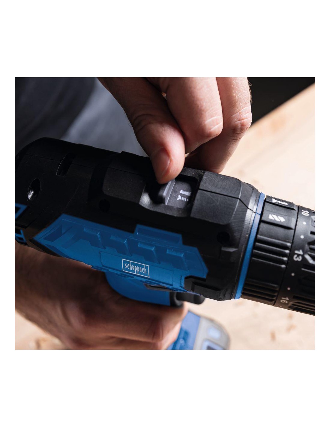 - Travail sans fil avec la série Scheppach IXES 20 Volts – toutes les batteries et chargeurs appartenant à cette série de systèmes peuvent être combinés avec la perceuse sans fil