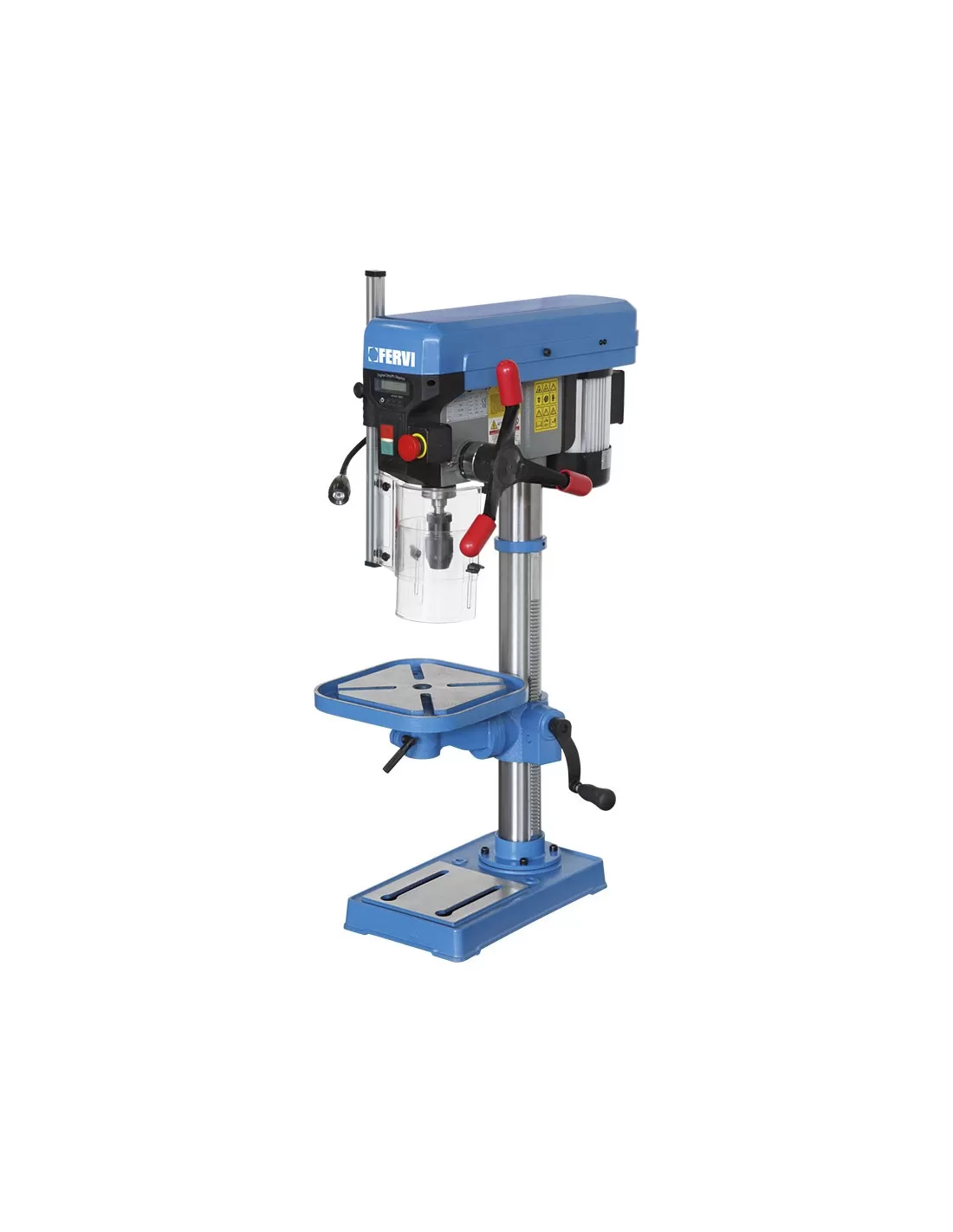 Nouveau dispositif de tension de courroie, lecture de la profondeur de perçage, éclairage LED inclus, table rotative et inclinable. Installation électrique avec circuit séparé 24V pour les commandes de la machine à bord.
