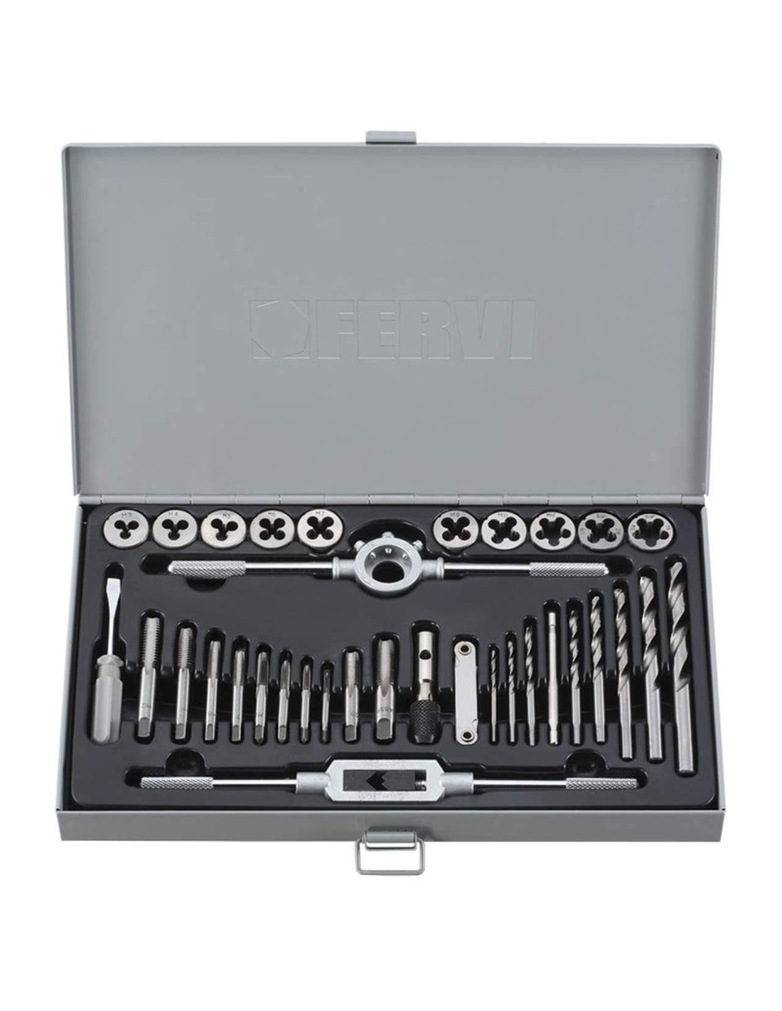 Avec forets hélicoïdaux et jauge de pas de vis.
