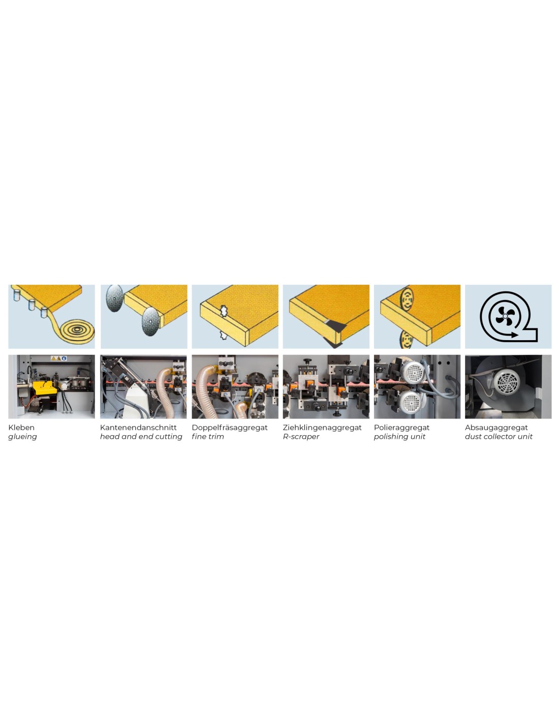 Découpe précise du chant (arrière/avant) via l'unité de coupe transversale