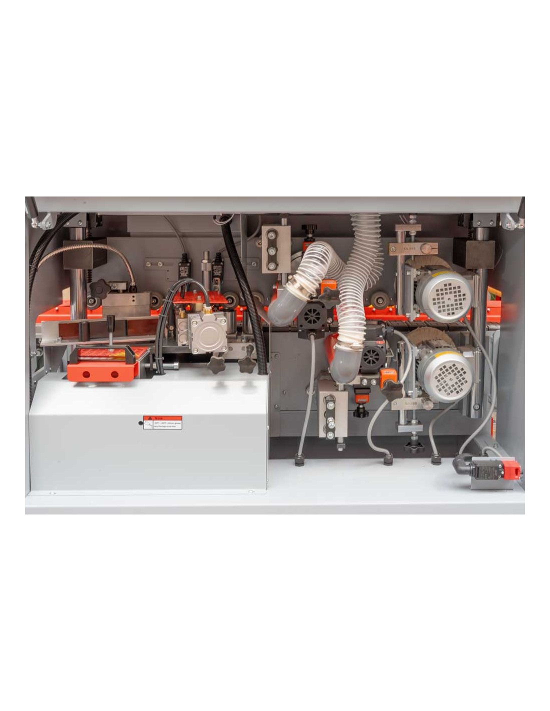 Équipement : 2 disques de polissage (ø 150 mm), 2 fraises pour double unité de rognage, fraise manuelle pour le placage de chants