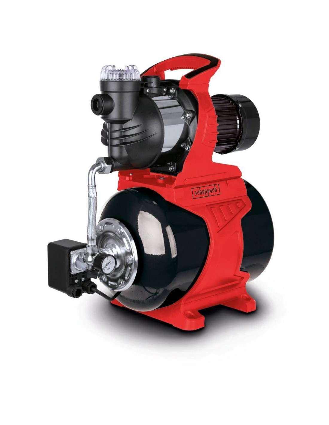 La pompe domestique Scheppach HWW1400 est idéale pour rendre l'eau des puits, citernes, réservoirs et fûts de récupération d'eau de pluie utilisable dans la maison et le jardin. Connecté au tuyau d'arrosage ou aux toilettes, le HWW1400 permet un approvisionnement en eau économe en ressources. Avec un moteur de 1 300 watts et une pression de refoulement maximale de 4,8 bars, la pompe à usage domestique peut débiter jusqu'à 6 000 litres par heure. Le réservoir sous pression a un volume de 24 litres et est également équipé d'un manomètre pratique pour mesurer la pression.