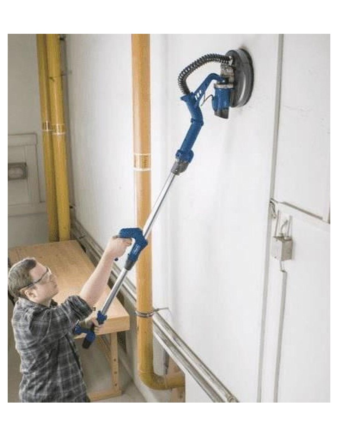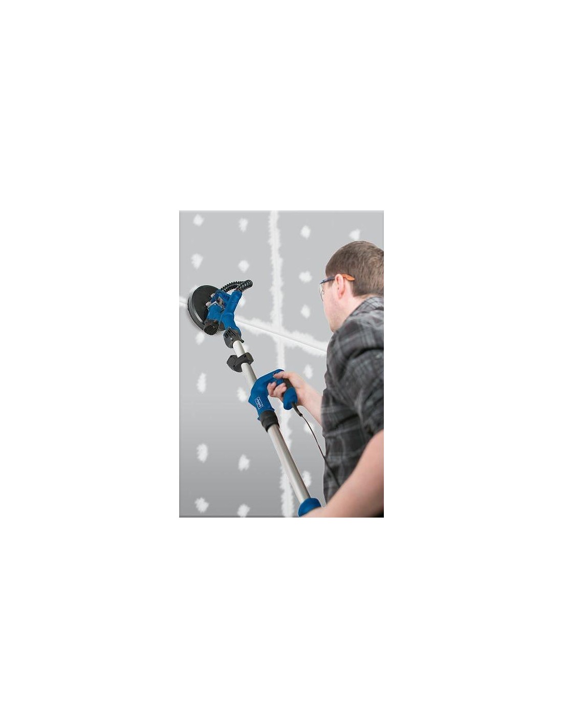 L'outil pratique et léger avec tige télescopique et tête de ponçage inclinable simplifie le travail au-dessus de la tête.