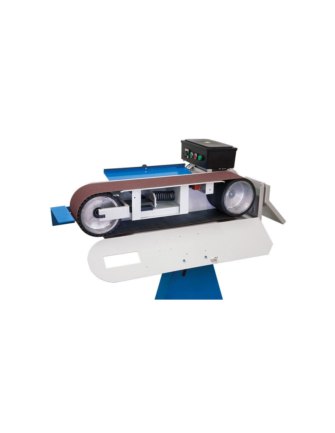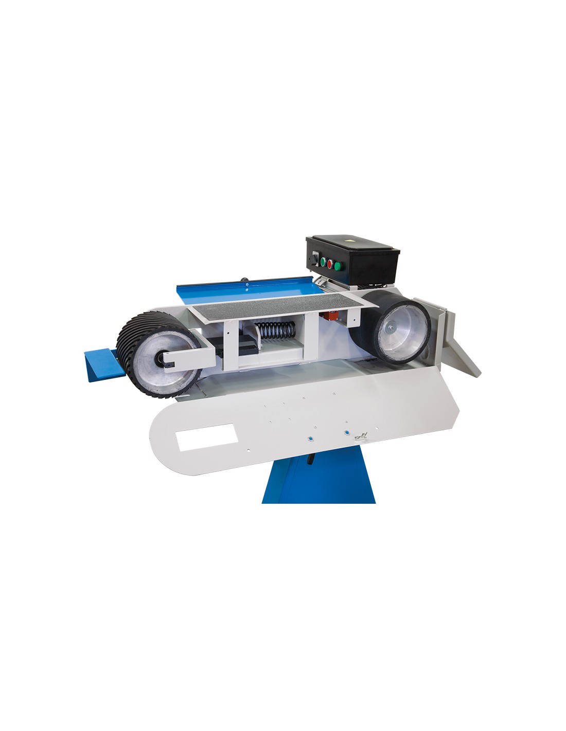 Les rouleaux caoutchoutés et les roulements de support en graphite assurent un couple de rotation uniforme tout au long de l'utilisation et garantissent l'alignement de la bande, qui peut être corrigé si nécessaire à l'aide du bouton de réglage. La bande est facile à remplacer grâce au mécanisme de changement rapide, ce qui évite toute perte de temps inutile. La ponceuse peut être inclinée rapidement grâce au levier de déblocage rapide, ce qui vous permet d'effectuer des travaux complexes en tout confort.