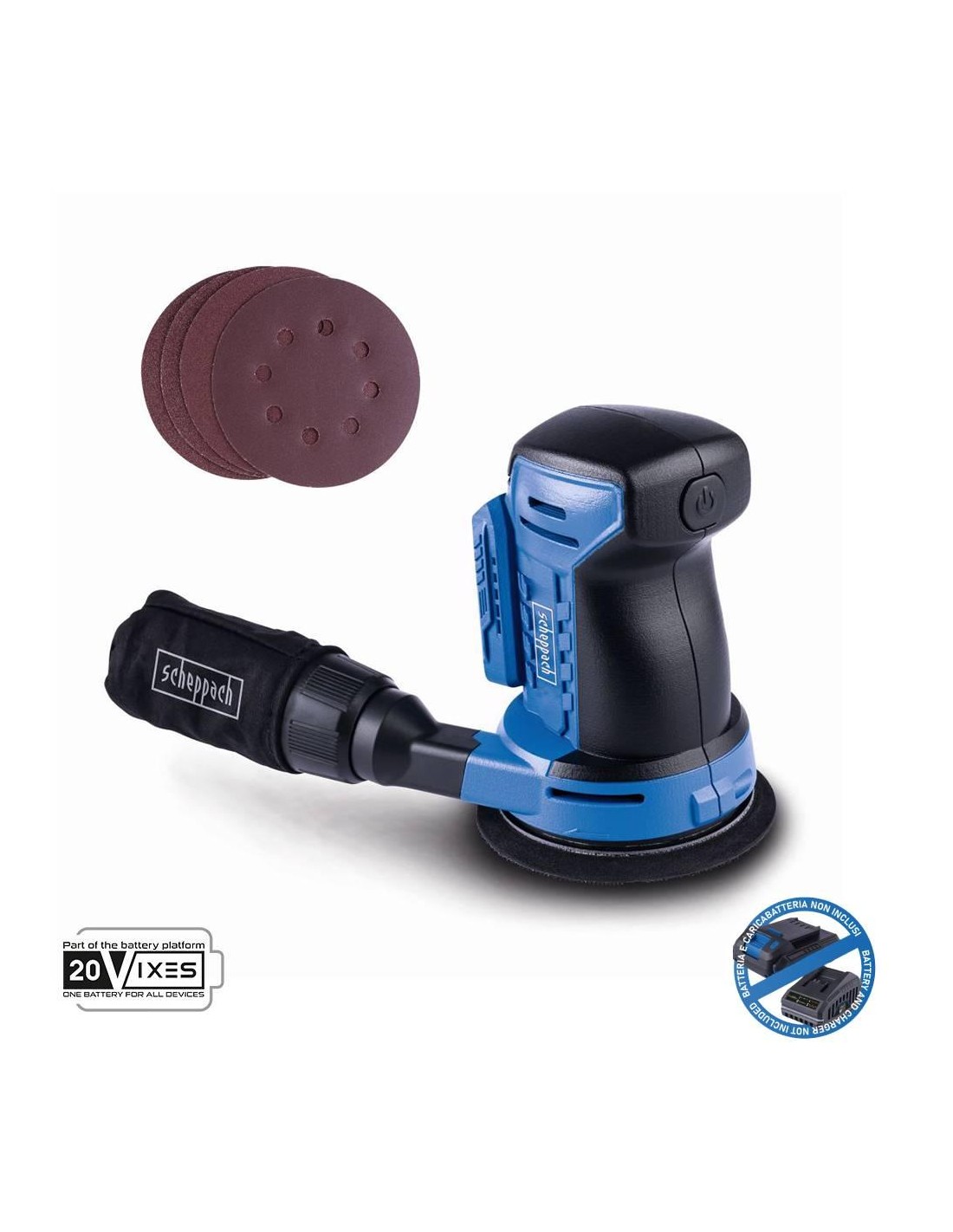 - Travail sans fil avec la série Scheppach IXES 20 Volts – toutes les batteries et chargeurs appartenant à cette série de systèmes peuvent être combinés avec la ponceuse orbitale sans fil