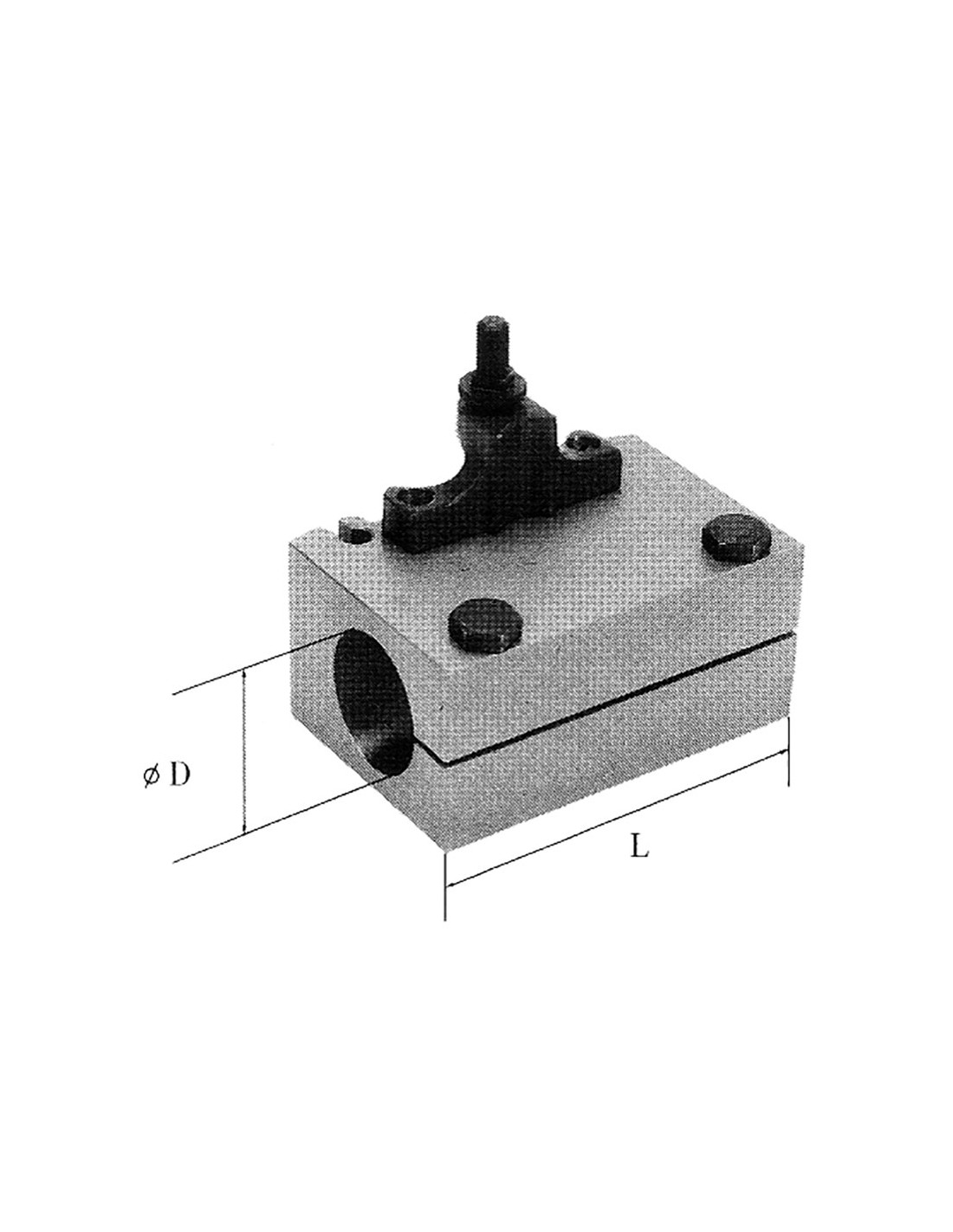 Type S, adapté au logement des douilles cône morse cod. C40142, et au logement direct des barres de tournage. Equipé d'une vis de réglage et de 2 vis de blocage.