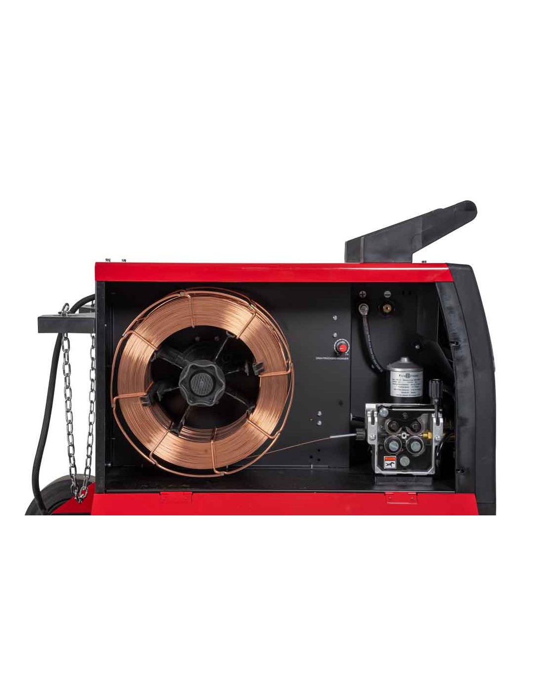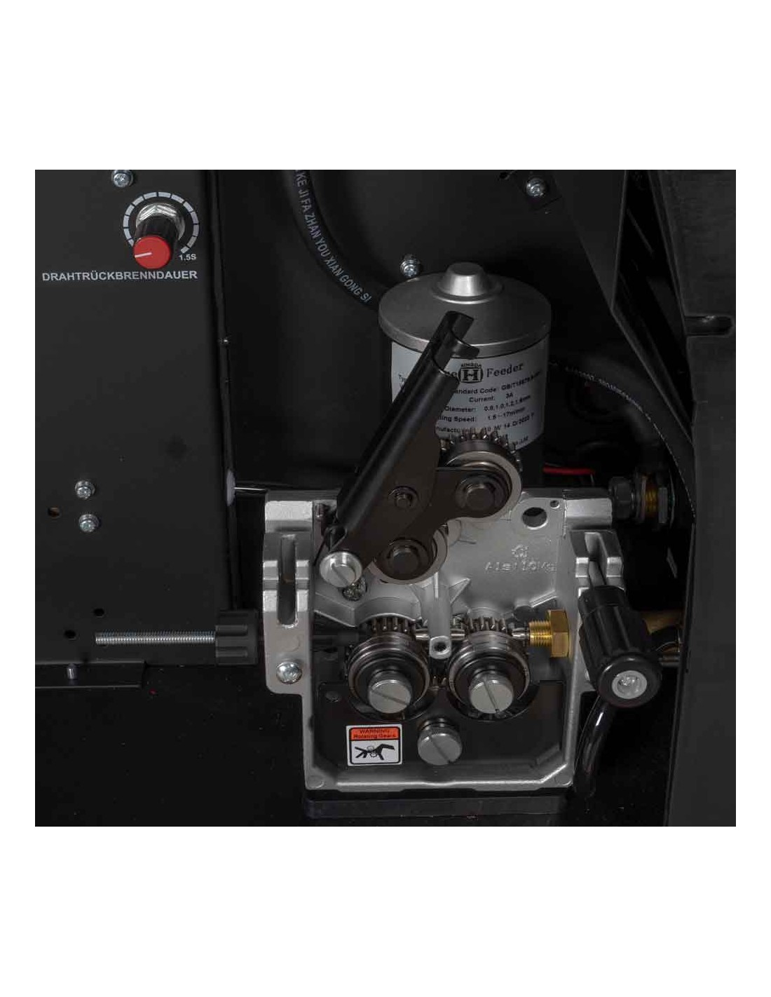 Inclus : pince de masse (3 m), tuyau de gaz (2 m), régulateur de pression, torche de soudage MIG, porte-électrode