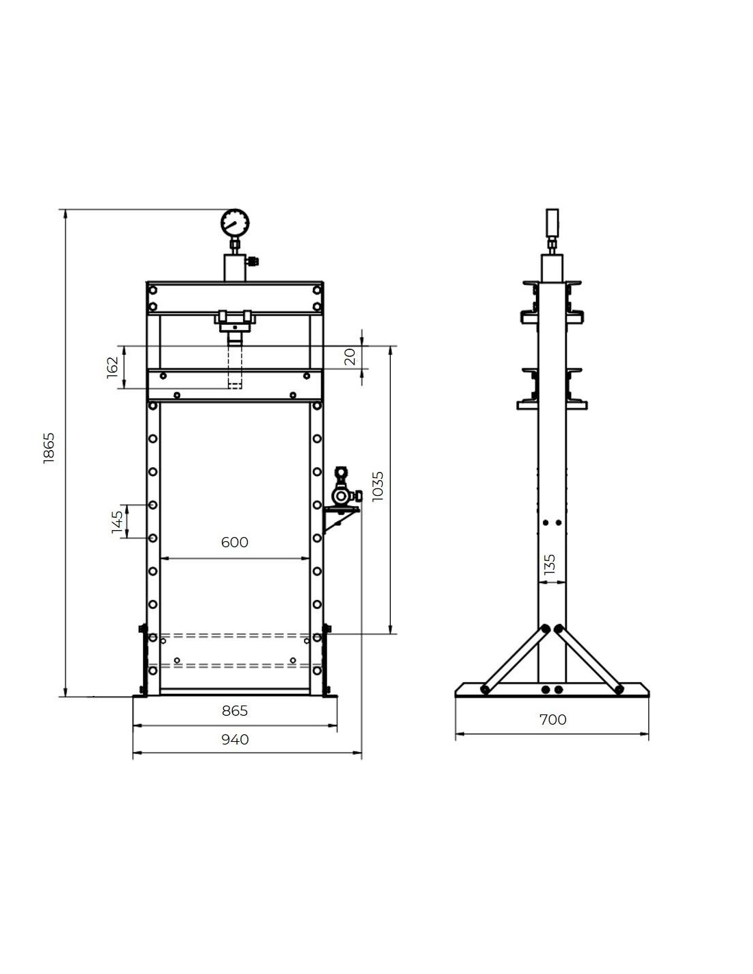 • Convient pour presser, plier, redresser, monter et démonter des roulements, etc.