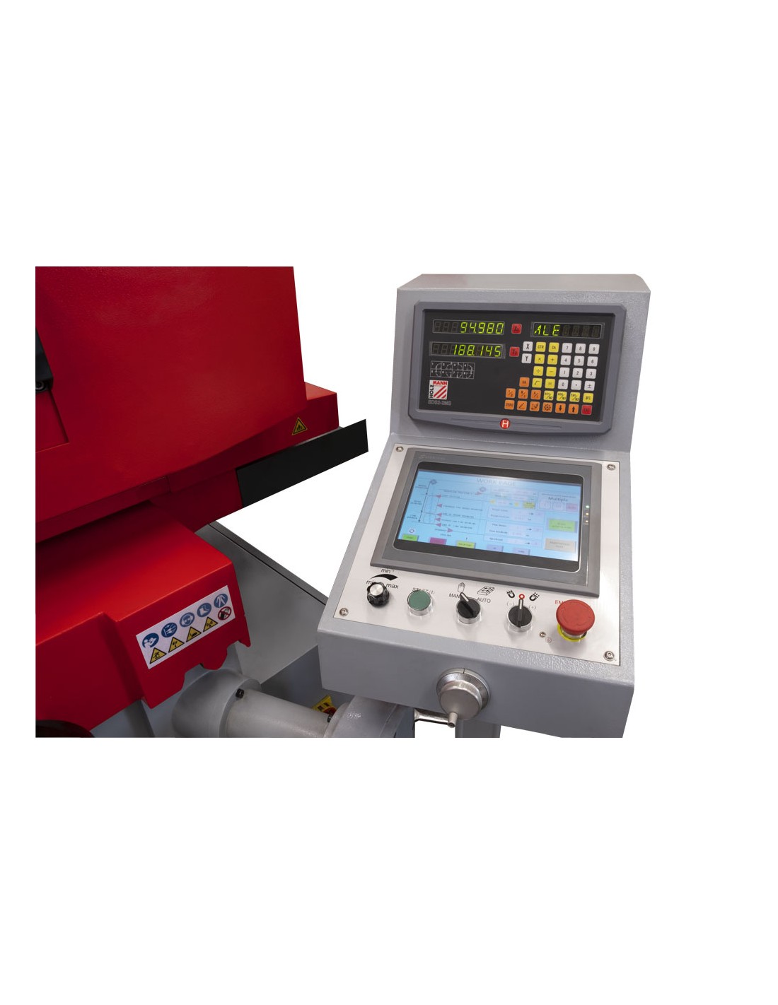 Réglage de la hauteur par servomoteur de 750 W (avance manuelle par volant sur le panneau de commande en 3 étapes et automatique en cycle automatique)