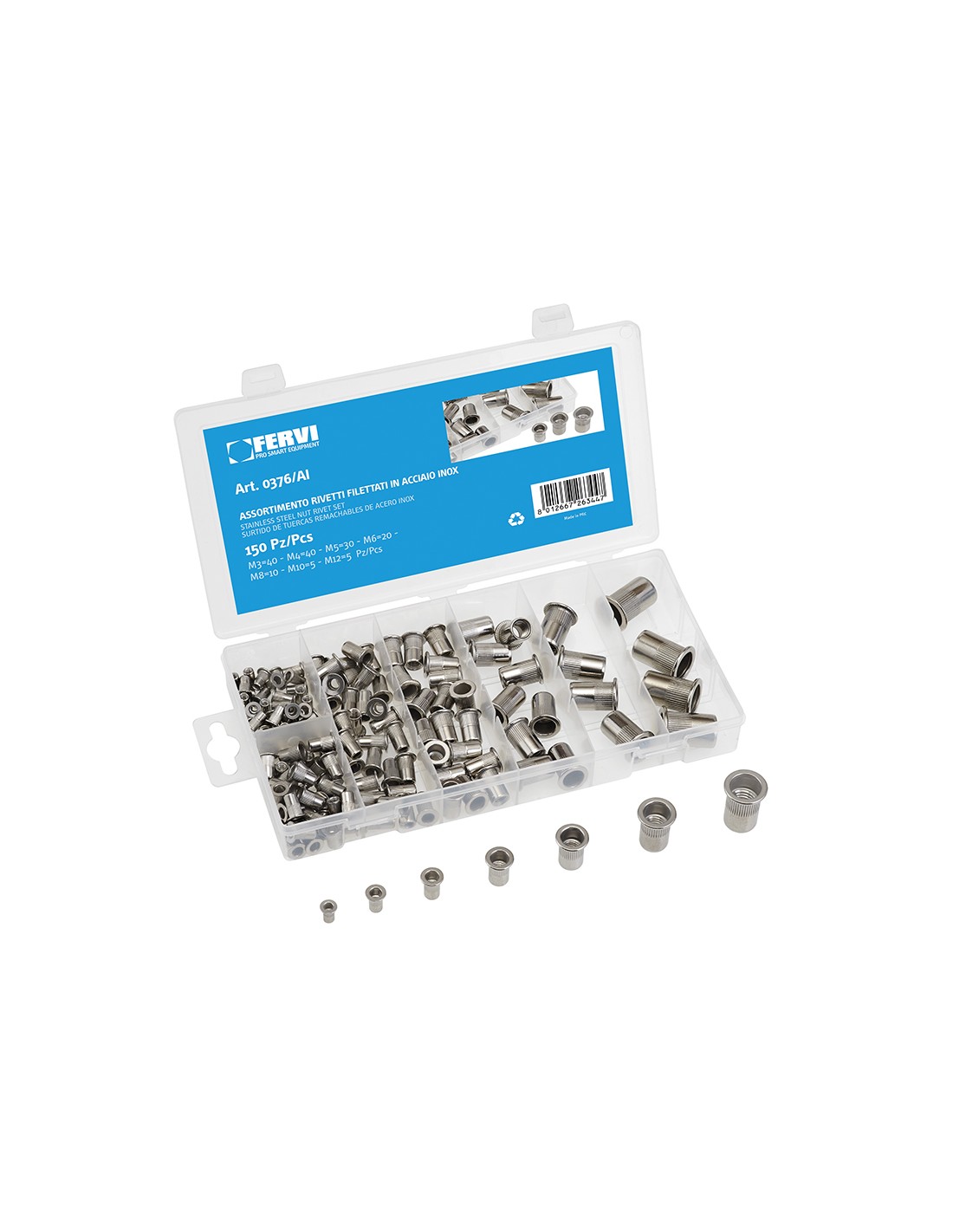 M3 : 40 pièces - M4 : 40 pièces - M5 : 30 pièces - M6 : 20 pièces - M8 : 10 pièces - M10 : 5 pièces - M12 : 5 pièces.