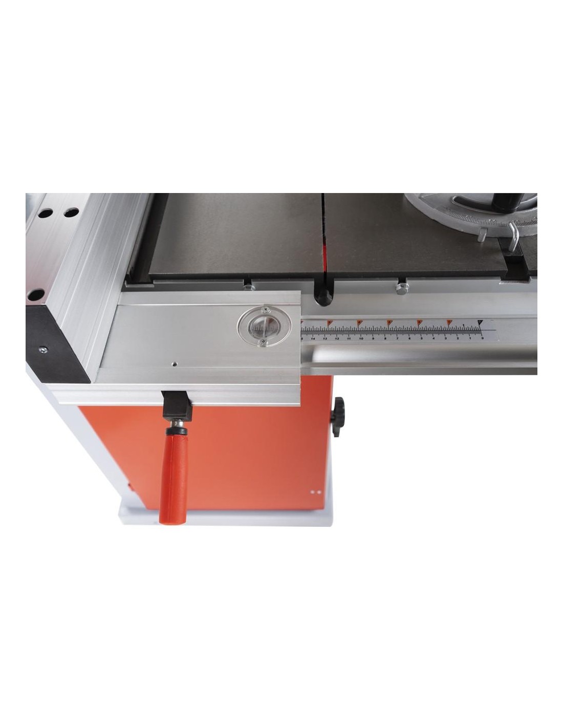 Guide du ruban, de précision aisément réglable grâce au volant à main.