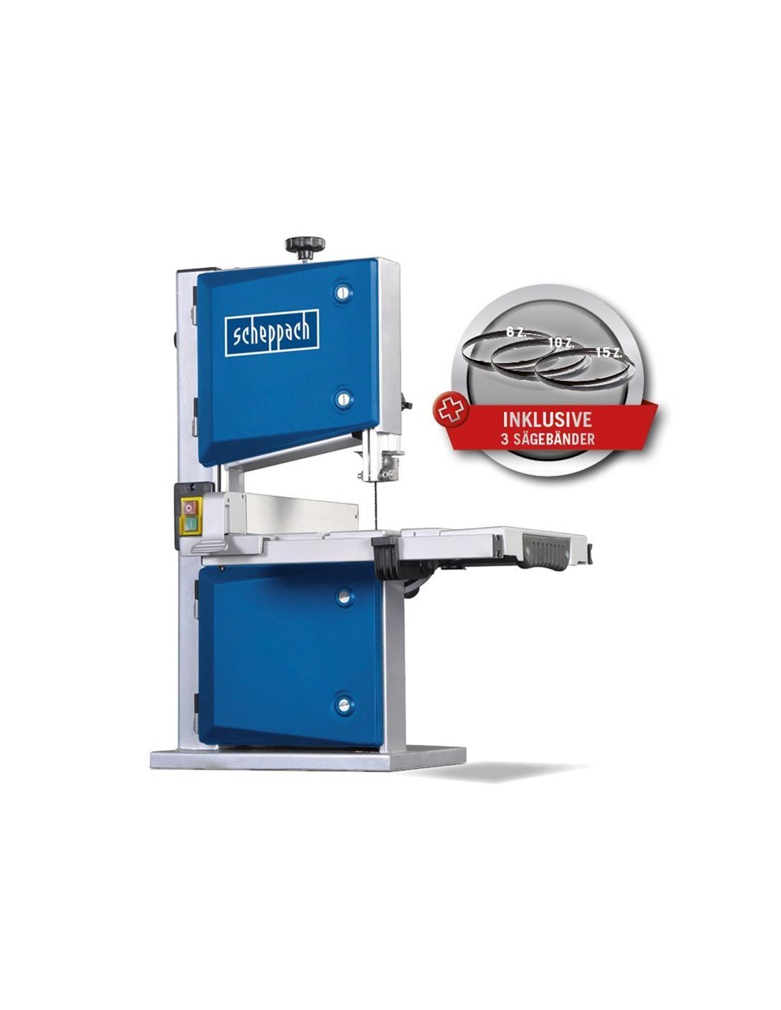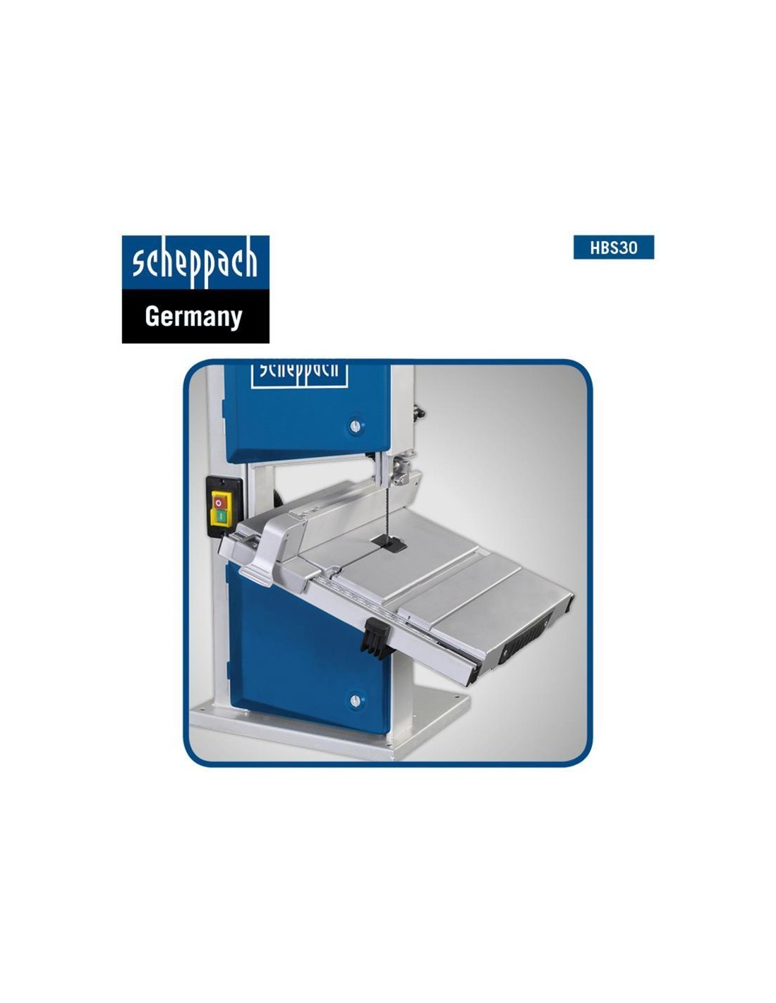 SCIE À RUBAN AVEC GUIDE D'ANGLE ET 3 SCIES A BANDE 350W 200 MM SCHEPPACH HBS30