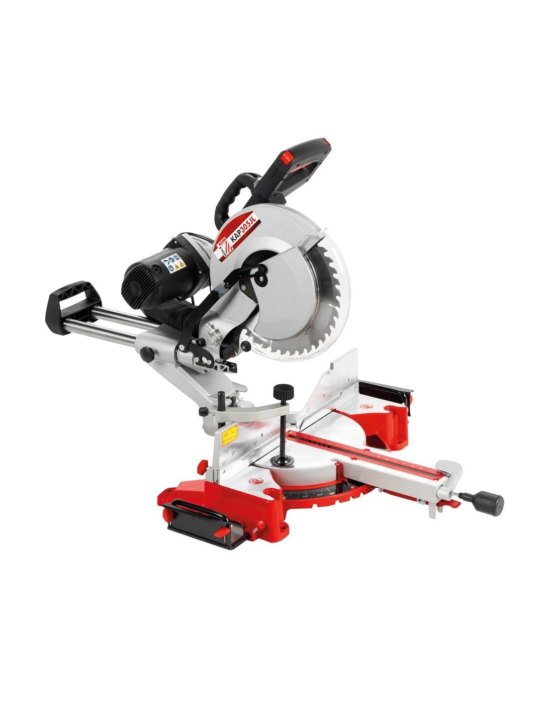 La scie passe-partout pivotante et à onglets KAP305JL fonctionne de façon extrêmement silencieuse grâce à son entraînement par courroie.