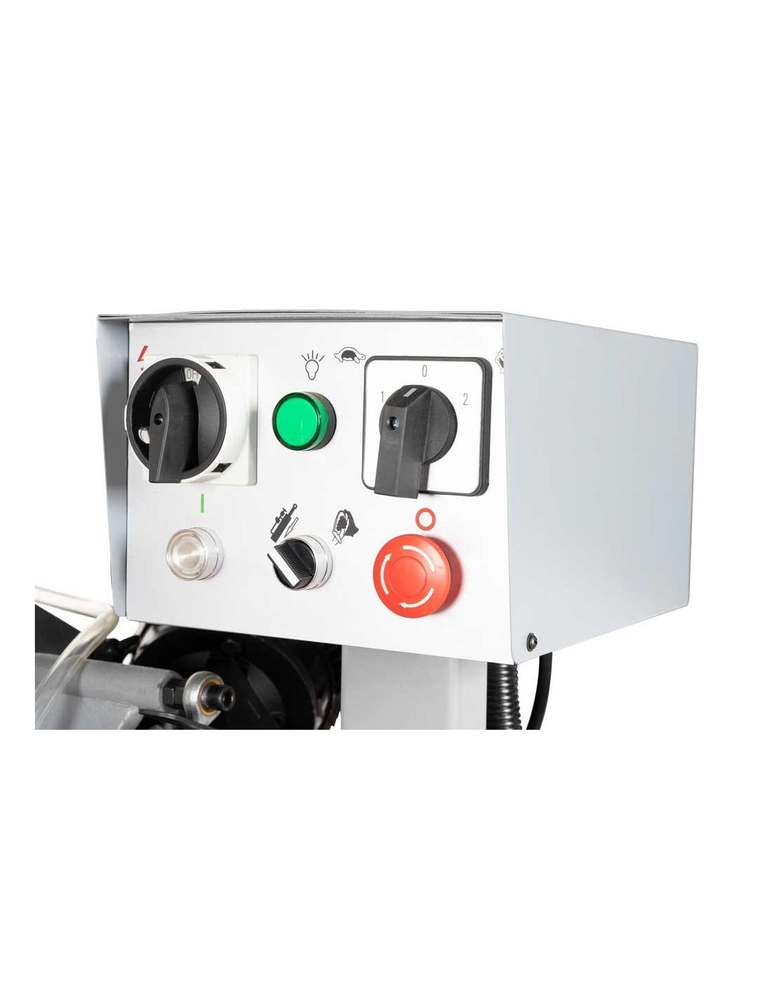 Inclus dans la livraison : 1 Lame HSS bi-métal, arrêt automatique en fin de découpe, système d’arrosage, socle, vérin de descente hydraulique.