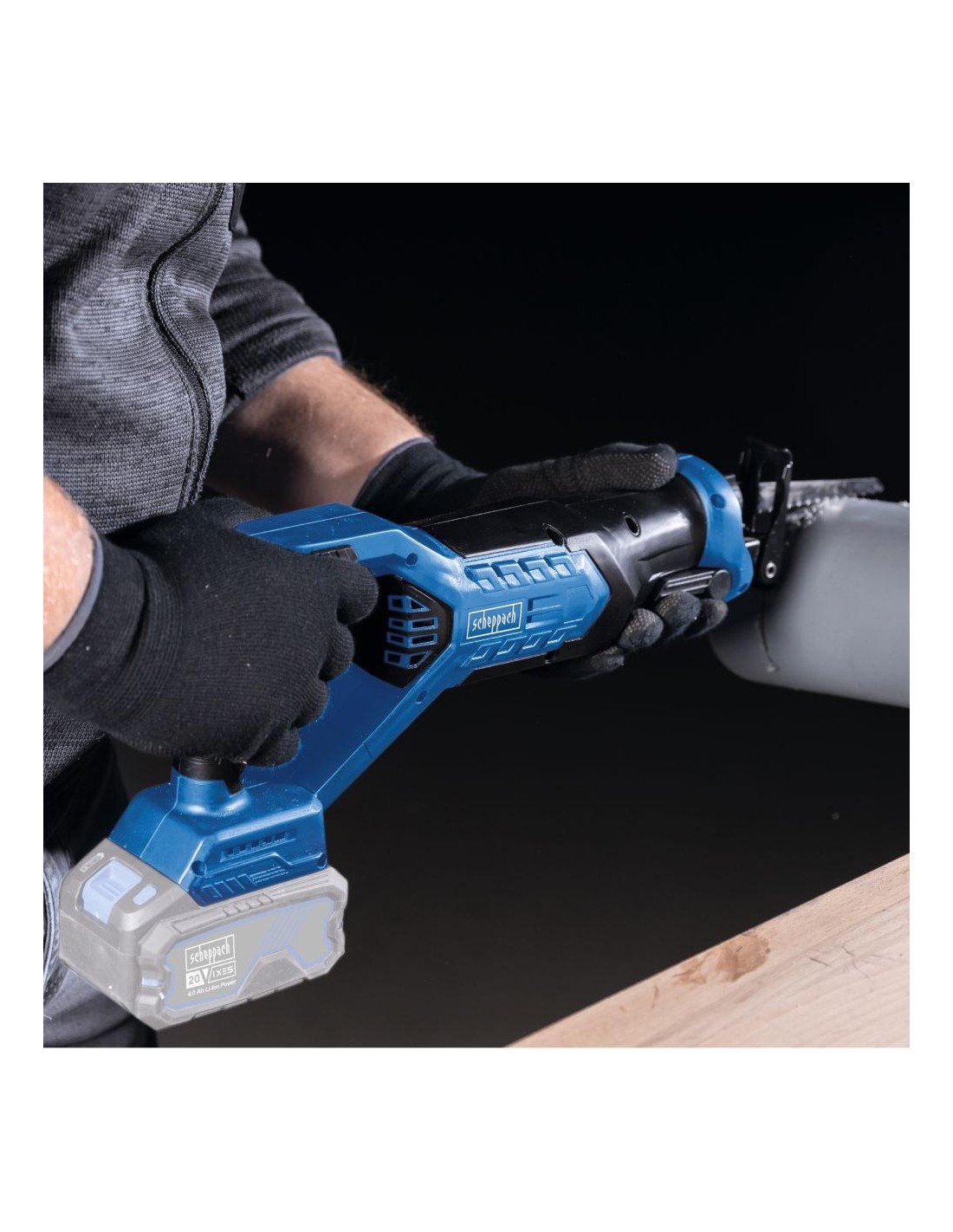 - Travail sans fil avec la série Scheppach IXES 20 Volts – toutes les batteries et chargeurs appartenant à cette série de systèmes peuvent être combinés avec la scie sabre alternative sans fil